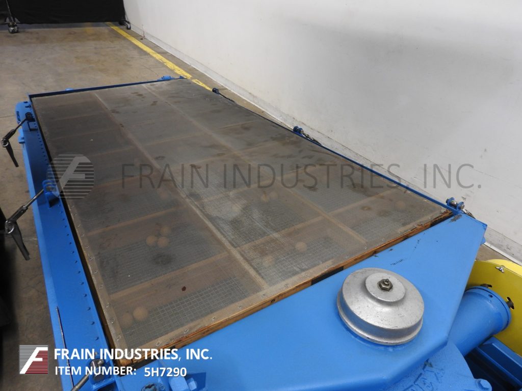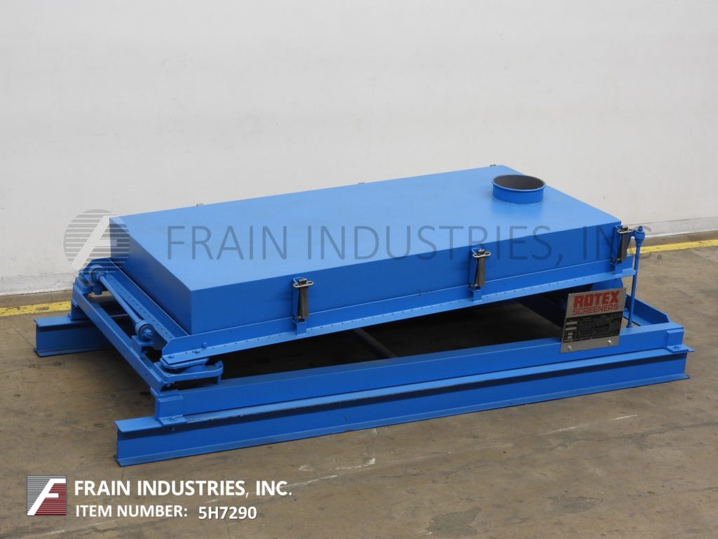 返回所有设备Rotex,型号21GP,单层振动筛,每小时重量根据材料和应用而定。配备88”长x 44“宽x 8“深层过滤室,26.8英尺²的屏幕面积,1½惠普马达驱动,上盖快速释放夹,(1)10“OD港口,ball-style自洁系统,有6地板间隙的中心底部排放10和10”直径底循环放电。