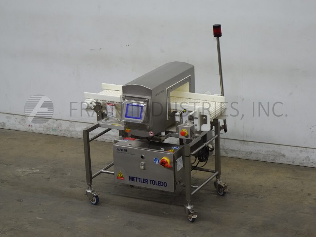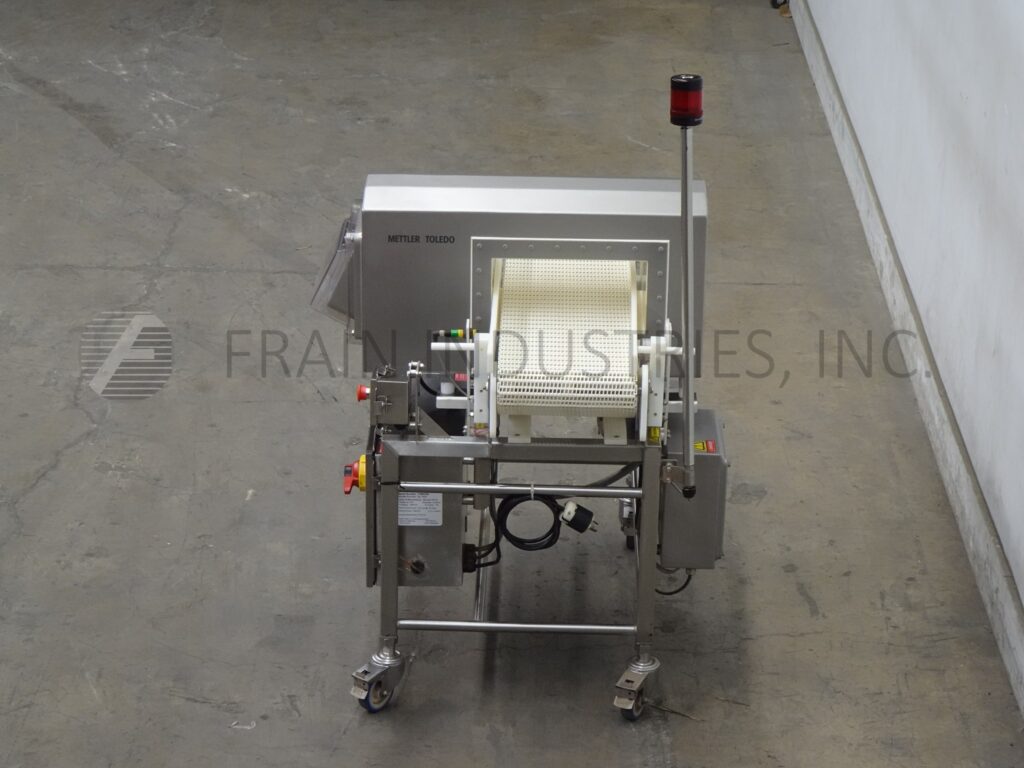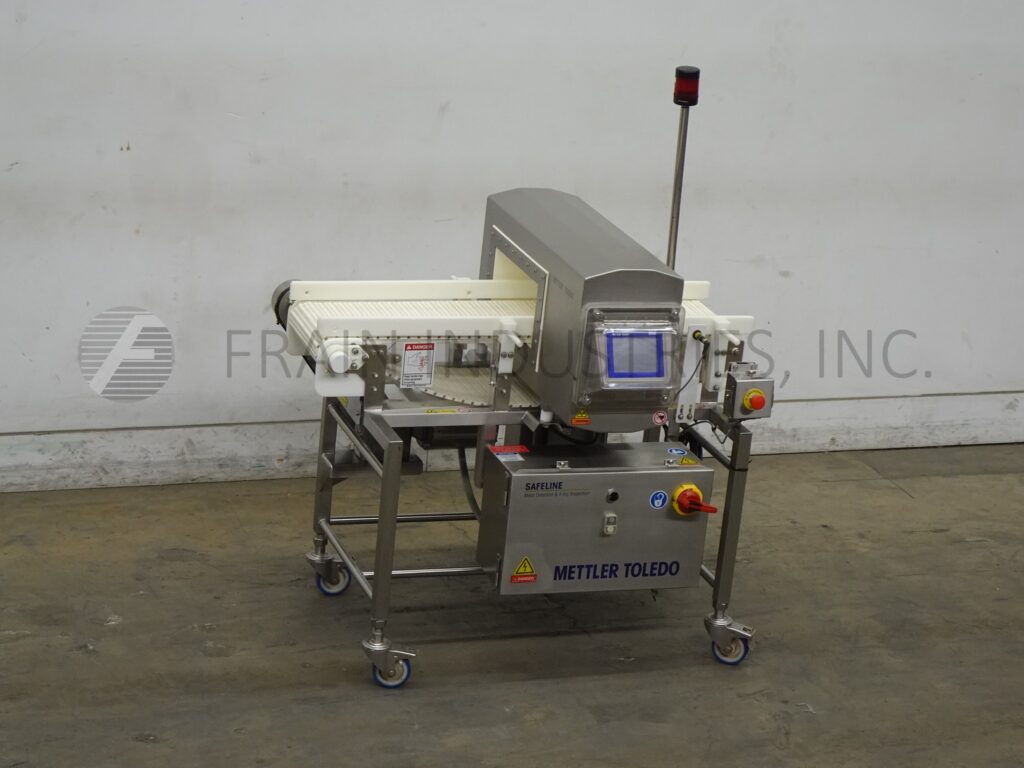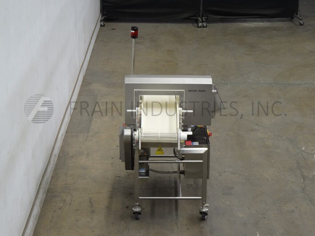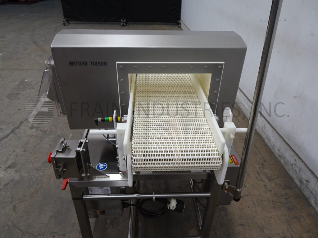 Back to All EquipmentSafeline Mettler Toledo, Model SL1500, Automatic, in line conveyor through, metal detector with number of product per minute – depending on materials and application. Useable Aperture: 5" in Height; 13" in Width. Equipped with 12" wide x 46" long table top conveyor system with 34½" infeed and discharge height with stop belt reject. Sensitivities: depending on product, container and enviorment being run in. Touch pad operator interface controller. with e-stop. Mounted on (4) leg stainless steel frame.