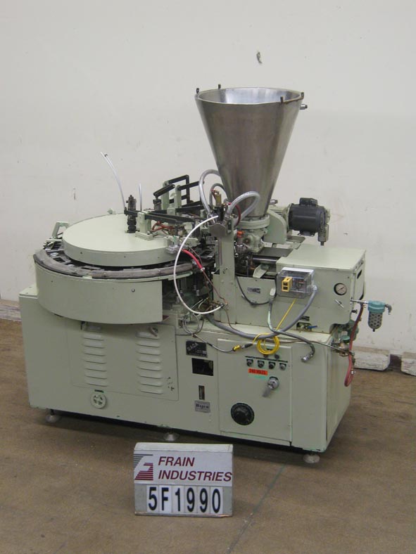 返回所有设备佐贺FS22P,半自动,塑料管填充封口。管尺寸范围:1/4"到2-3/16"直径。填充尺寸:高达9盎司。配备了2.5英尺³不锈钢产品料斗,空气管清洁器,双活塞填料,填充喷嘴,22口袋旋转转台,热颚管密封,水冷颚和可变温度和速度控制。不锈钢接触部件。安装在可调节高度的腿。速度取决于材料和应用。更换所需零件以适应尺寸范围。