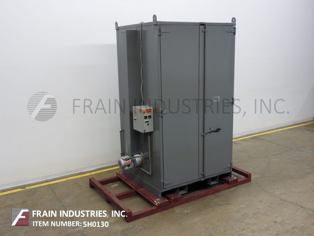 Back to All EquipmentSahara / Benko Model C6E8VCS, vertical, steel construction, up to (8) 55 gallon drums with total capacity of 8,000 pounds, electric heated hot box. Equipped with dual access doors and Interior dimensions of: 62" in Length; 62" in Width; 110" in Height heating cabinet. Control panel has (2) temperature controllers with a temperature range of up to 350° F. with start and stop buttons. All steel construction with 12 gauge interior and 14 gauge exterior walls and 3/4 Hp blower motor. Mounted on heavy duty forkable base frame.