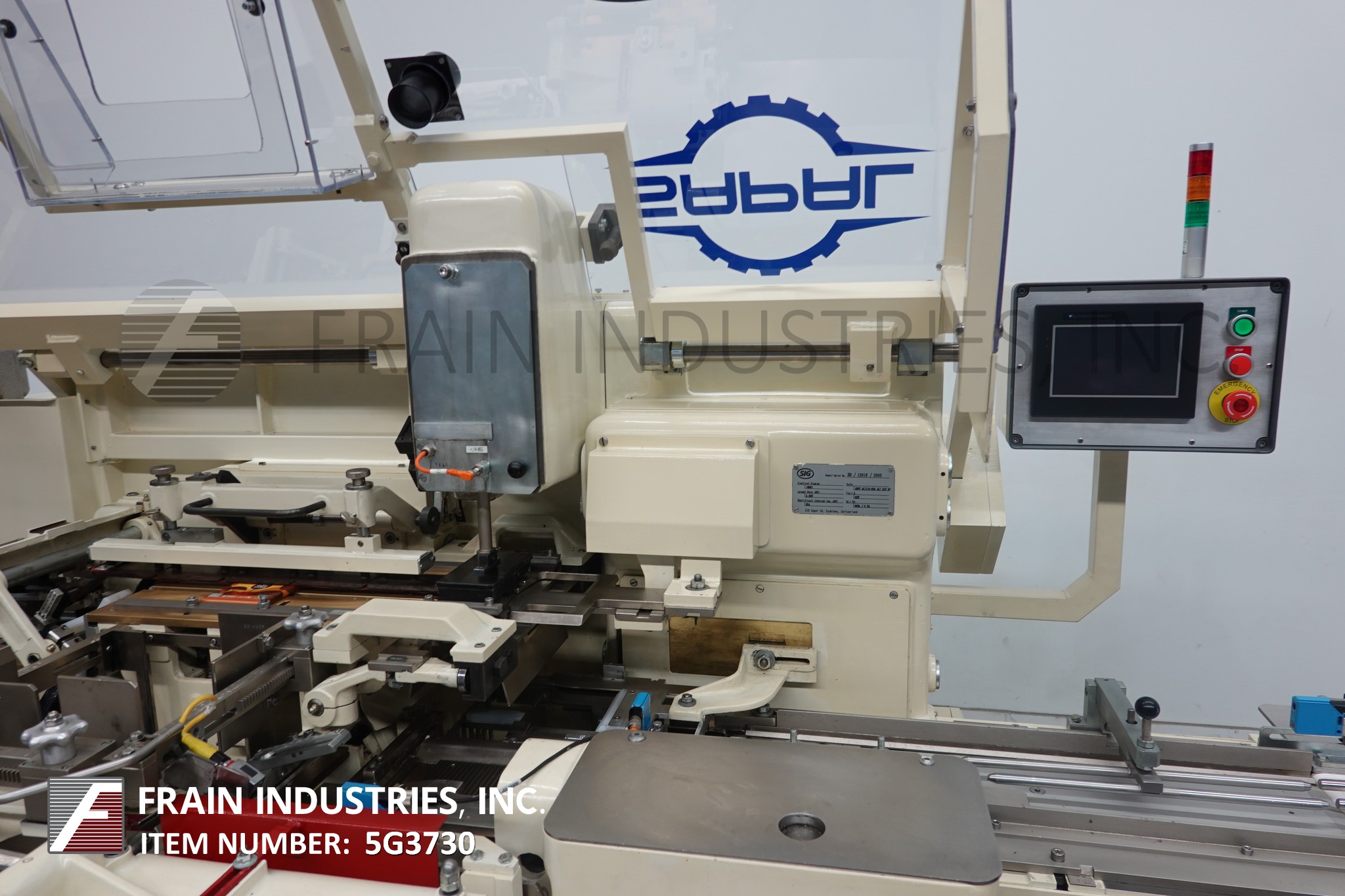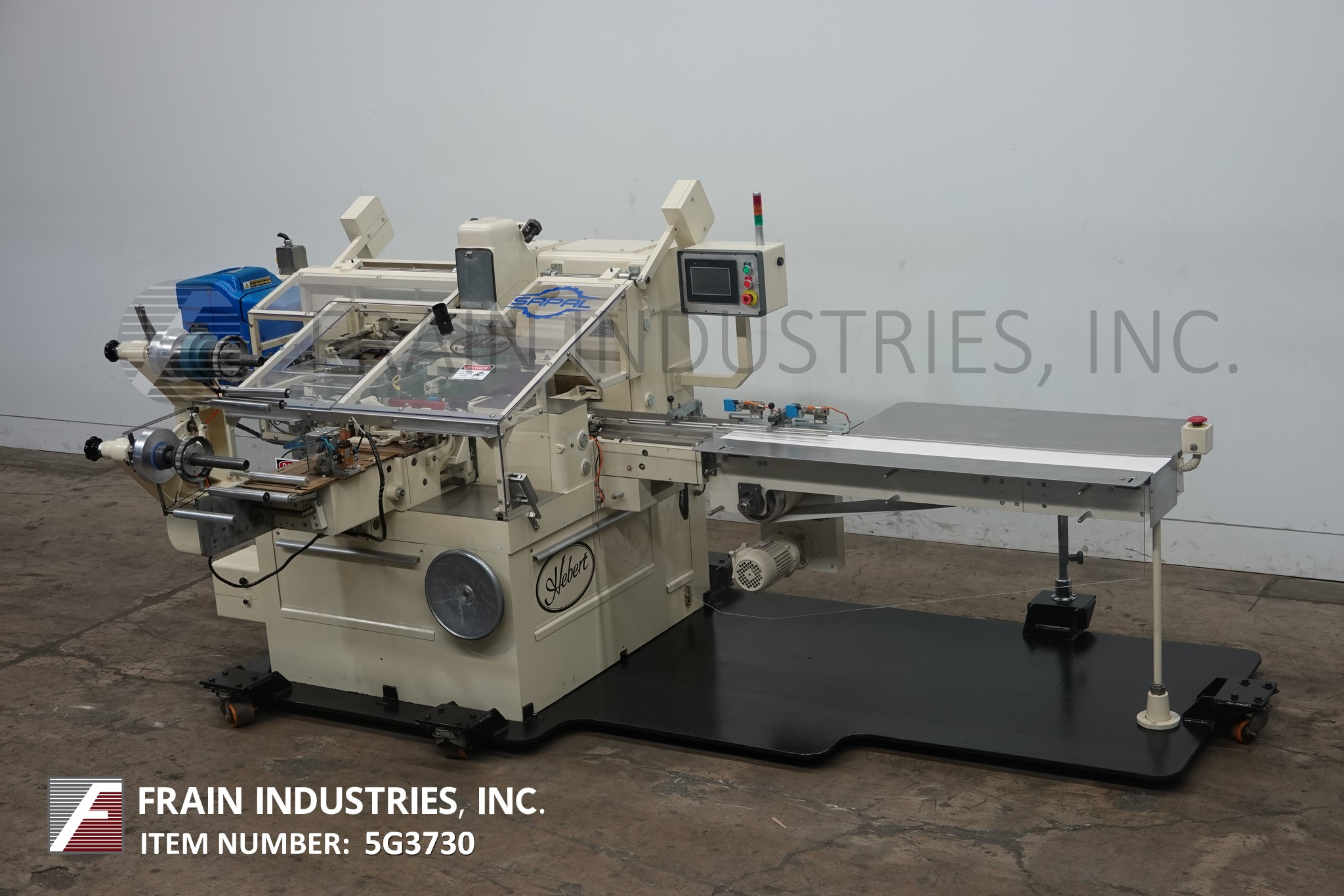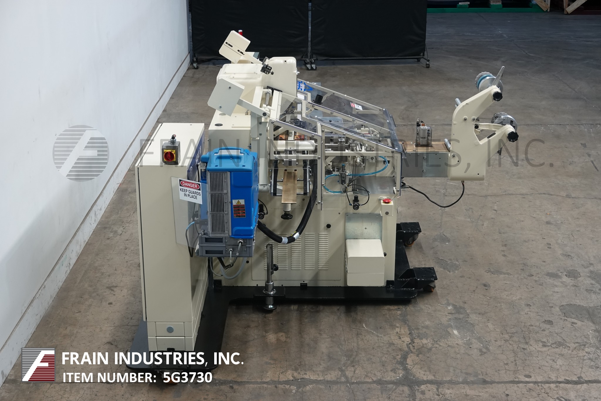返回所有设备SAPAL Model BB,自动,1或2个材料,包装器从20到180个每分钟的包装,适用于普通矩形杆,20至140个填充条或带坚果的棒的杆或棒 - 取决于材料和应用。封装尺寸范围:长度为90mm(3.54“)至195mm(7.68”);30mm(1.18“)宽度为95mm(3.74”);高度5mm(0.19“)至16mm(0.63”)。配备60英寸的饲料输送机,带有可调节导轨,梭子转移段,内包装卷轴,外包装堆叠,折叠截面,热熔胶系统,垂直转移和2个链销压缩部分,具有24英寸的侧面刮水刷。控制面板具有Siemens控制器,带有控制开关和带有e-stop的按钮,LED显示屏和Statis灯。安装在高度可调节的腿上,带有脚轮和联锁lexan安全守卫。