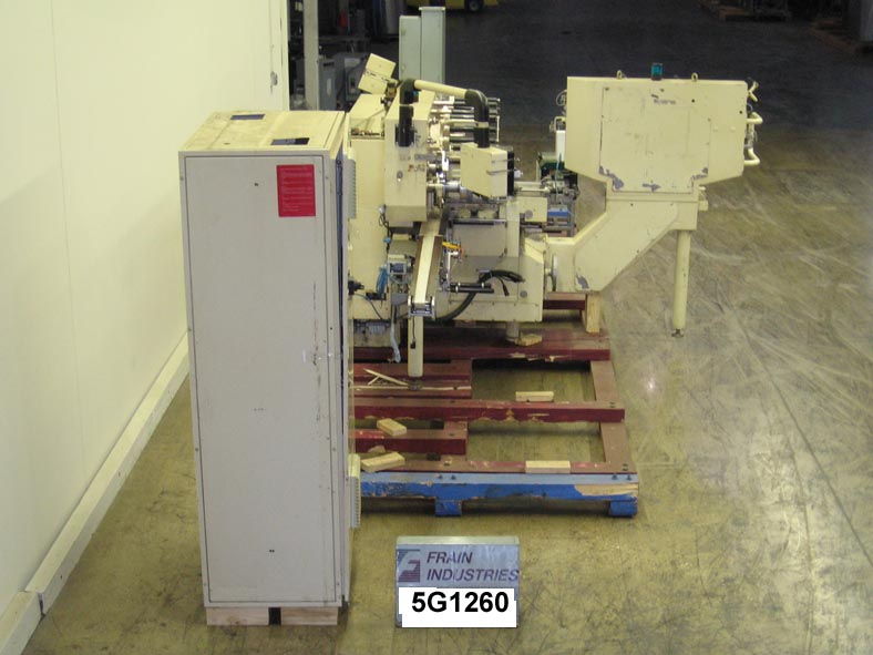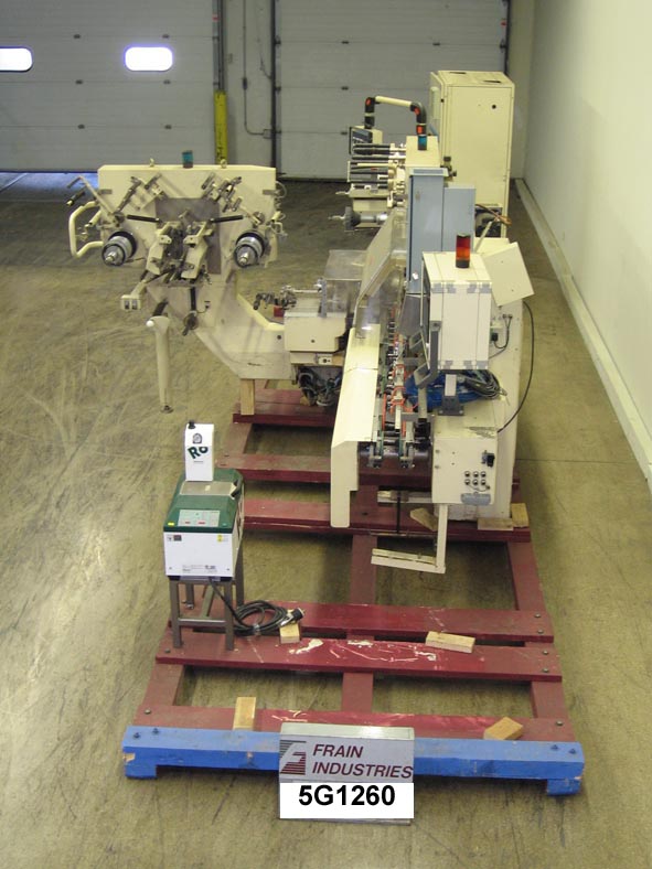 返回所有设备SAPAL SC-3-1,自动水平,箔片和包装纸,每分钟80至300包 - 取决于材料,应用和机器配置。最大产品范围:7-1 / 2“长度×4-3 / 4”的高度x 1/2“。配备(2)铝箔,并通过包裹薄膜展开,(2)箔,并在包裹拼接站,注册,刀截止的箔和包裹,(6)双绳子在馈送时序输送机,凸耳链产品输送机4“用1/2”H凸耳的中心。热熔胶系统,45“长X 4 1/4”宽产品排放式输送机,空气抛出。遥控面板具有艾伦布拉德利控制器,带有面板视图和摆动控制。低胶片指示灯,架空臂面板和伺服电动机驱动屏障保护和Statis灯。安装在高度可调节的腿上。