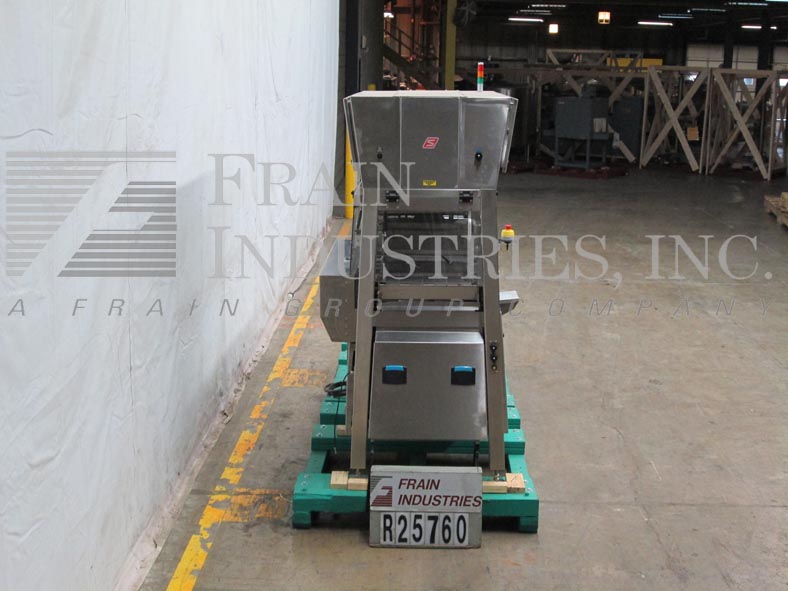 野蛮人/ WC史密斯巧克力浸挂糖衣机16“宽x 48”长氯丁橡胶产品在进料输送机,16“宽x 48”长不锈钢金属网带通过浸挂糖衣机、夹套水泵以变化的速度开车,可调(2)窗帘巧克力流盘,底辊调节池和开/关开关,9加仑产品储罐,可变速度鼓风机和产品振振器,出口详细与可调位置,速度和温度控制,水夹套巧克力储热器和搅拌器,光学水平传感器的进口巧克力,并具有板载回火能力。PLC触摸屏控制及统计灯条。