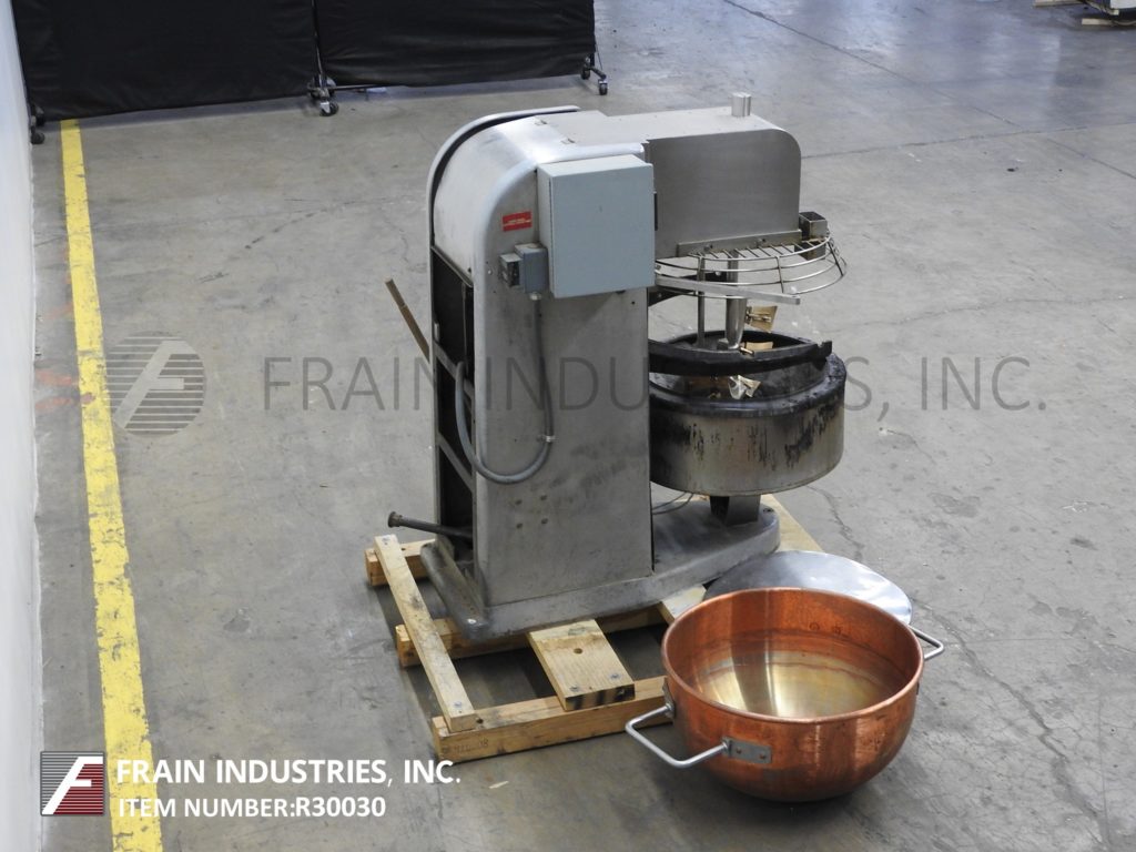 返回所有设备萨维奇兄弟,天然气燃烧,铜水壶炊具和搅拌机每小时的产品磅-取决于材料,应用和机器配置。配备16万BTU容量的铸铁对流天然气燃烧器。打开盖子,手动倾斜手柄和单动作,用(5)3“长× 3”宽刮板和笼式安全防护装置刮擦表面搅拌。目前有20"外径x 12"深,11加仑容量的铜搅拌碗。控制面板与搅拌,电源和警报/关闭开关和Omeron热控制器。安装在重型基础框架。