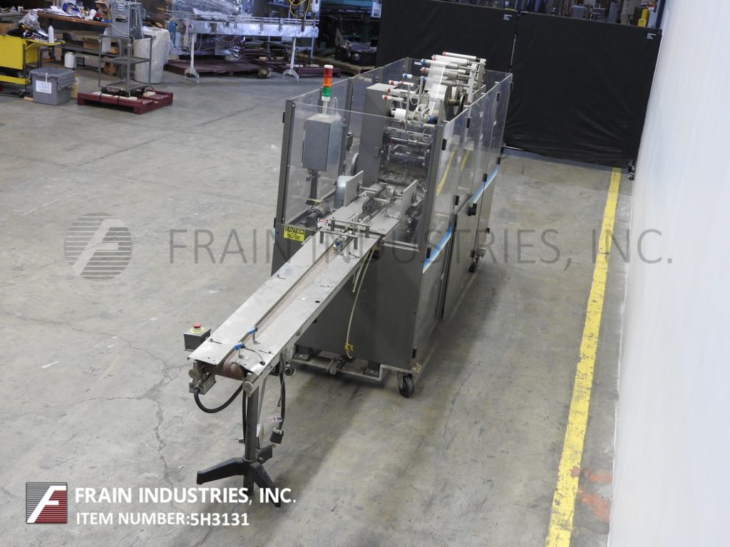 返回所有设备Scandia, 720型自动转塔式包装机。额定从50到350 CPM -取决于材料,应用和机器配置。包装尺寸范围:1(5/8)“至3¼”长度;3½"至7½"宽度;(7/16)“到1½”的高度。配备6"宽x 70"长的进料带,24"长的顶部链转移部分设置在12"中心,薄膜饲料头,刀薄膜切割部分,(6)站旋转转塔,薄膜塔克,拖曳的交付链,撕裂胶带应用器,侧塔克和文件夹和18"长的双加热部分。控制面板采用AB PLC和触摸屏HMI。