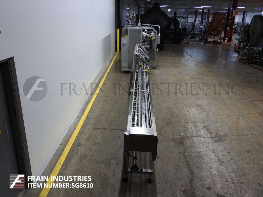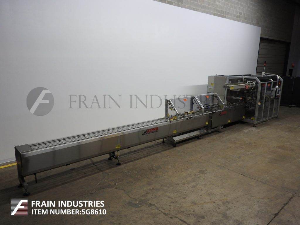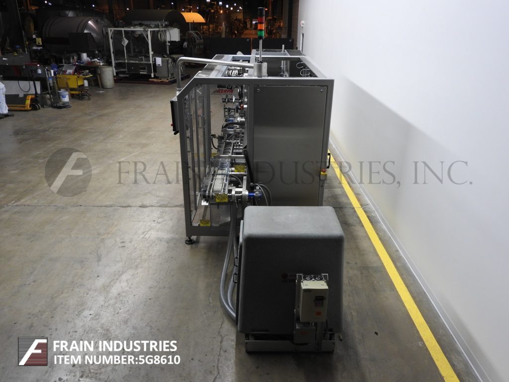 返回所有设备SERPA,型号P100,不锈钢,自动,连续运动,水平,热熔胶盒装。每分钟50至250箱 - 取决于材料,应用和机器配置。纸箱尺寸范围:1“至6”的长度;½“到4”宽,深度为4“至7½”。配备4个链条可在6英寸中心可调节的饲料中,带3½“长x½”宽x 8“深固定产品口袋,70”长3座动力空白纸箱杂志,6个旋转纸盒PIC-N-Place带旋转前-Break,No-Product / No-Carton,Top Carton Hold Down,桶凸轮装载机,Nordson热熔胶系统,真空泵系统,SEKO GUAGES,24英寸长的真空带放电,空气喷射拒绝和与Statis Light互锁安全守卫酒吧。控制面板具有AB PLC,带按钮开始/停止/重置/ e-stop和Swing ARM AB PanelView 1200p触摸屏显示器。安装在多腿,高度可调框架上。