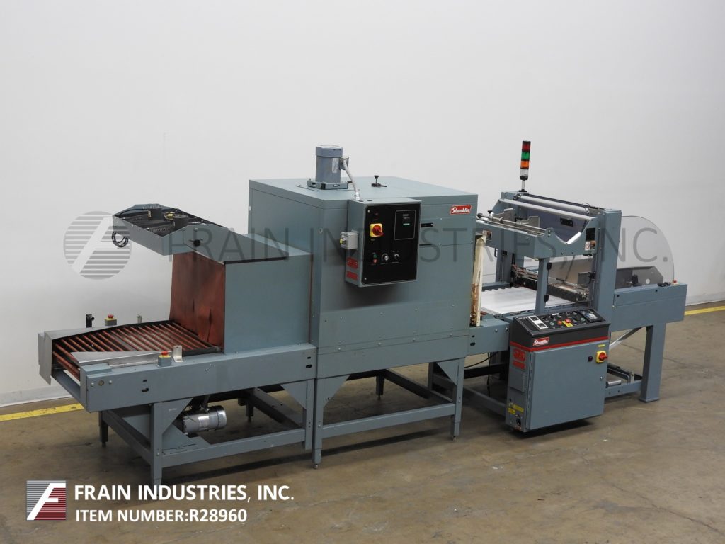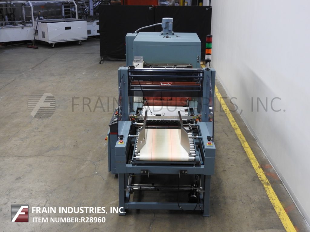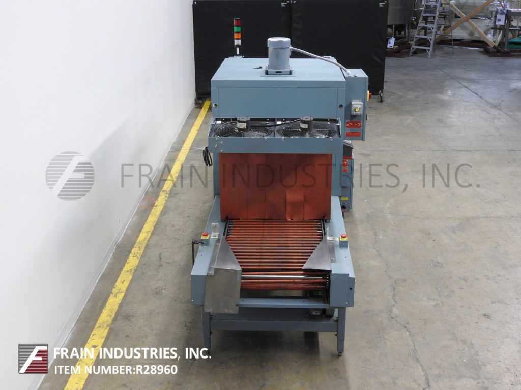 隧道:Shanklin型号T8PR,自动收缩隧道。配备28英寸宽x 20“高光圈x 47”长单区域收缩室,120“长x 25”宽直播滚子产品输送机和散热风扇放电端。带按钮的控制面板启动/停止输送机,隧道/关闭开关,温度控制器和传送带速度控制转盘。安装在(4)腿基架上,进给和排放为33“。