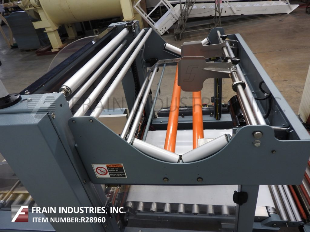 Bundler:Shanklin Model B2BB:封装尺寸范围:高达30“宽度; 14英寸高。配备20英寸宽x 34“长氯丁橡胶进料输送机,32英寸宽的上部和下部动力薄膜滚筒,32英寸宽密封钳口,具有14英寸的垂直行程和23”宽x 48“长氯丁橡胶排放输送机。控制面板控制器带触摸板显示器,自动/手动开关,两只手按钮手动循环和数字热控制。安装在重型底座上。
