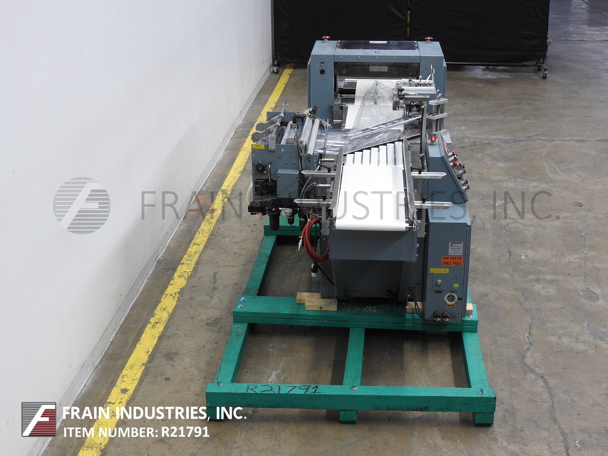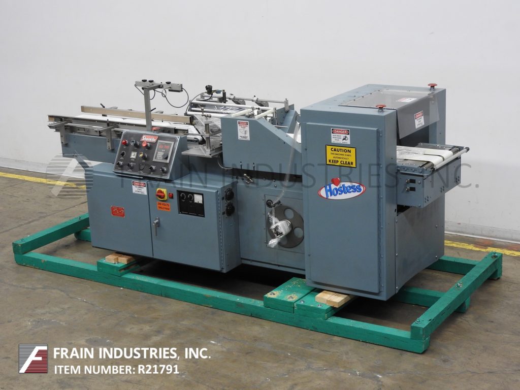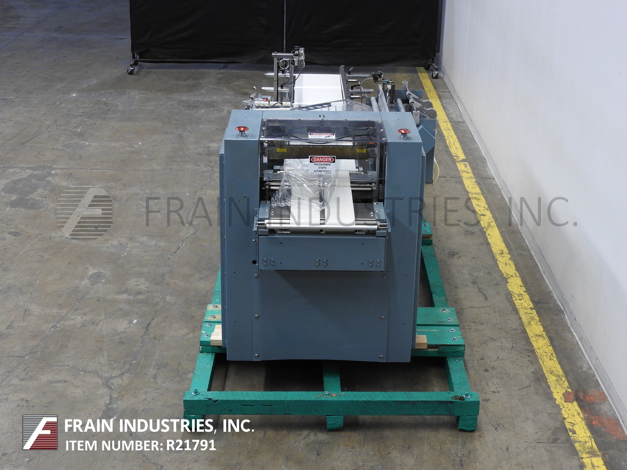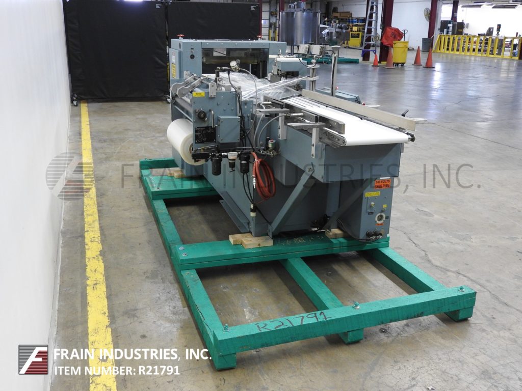 返回所有设备Shanklin F1型,自动连续运动,流动通过收缩包装中心文件夹额定从10到50包或60线性英尺每分钟-取决于材料和应用。包装尺寸范围:6"至48"长x 2"至16"宽x 1/8"至3 1/2"高(高达5"高与适当的变化部分)。最大胶卷尺寸:22"折叠或44"平。本机配有标准的卷膜、折叠膜卷、打孔机、顶部和底部的加热丝侧封、热刀切断、固定犁和手动曲柄/扭转旋钮调整。双进料输送机和带式排料输送机。安装在脚轮上,便于移动,并有废料清除系统。包括Allen Bradley plc。