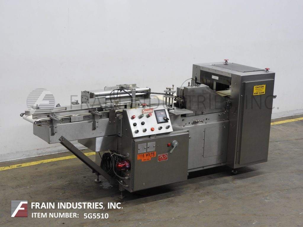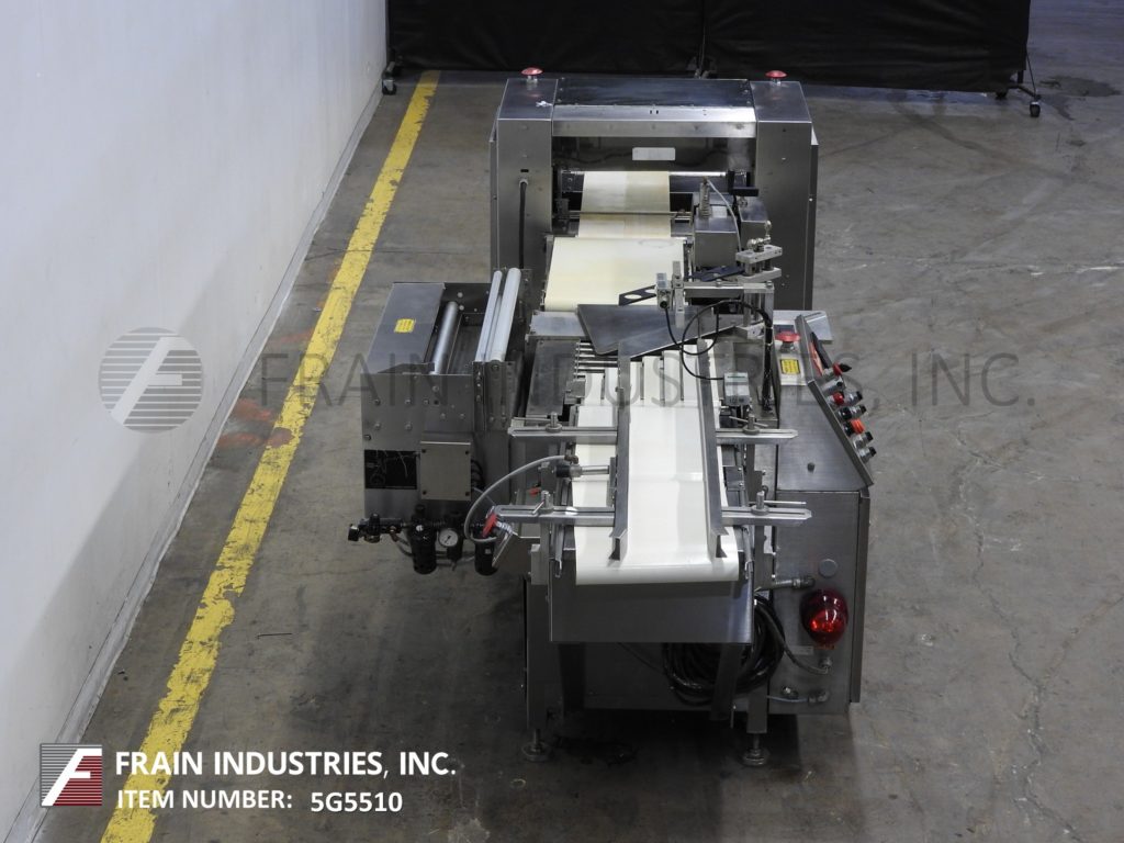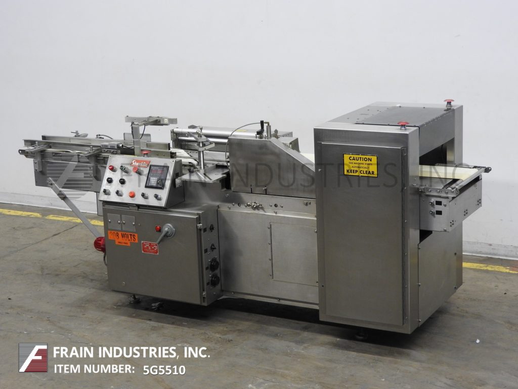 返回所有设备Shanklin F-1型,自动,连续运动,内联流通过收缩包装器额定从0到60线性英尺每分钟产品数量-取决于材料和应用。不锈钢结构。包装尺寸范围:长度6"至48";2"至16"宽度;1/8“到6”的高度。最大薄膜尺寸:22英寸折叠。配有侧膜放卷,折叠膜卷,打孔机,双线侧封和18"宽热刀切断,双17"长× 13"宽的饲料输送机和21"长× 10"宽的卸料输送机。控制面板采用A/B PLC,带有触摸板控制器和数字读数。安装在基础框架与水平腿。