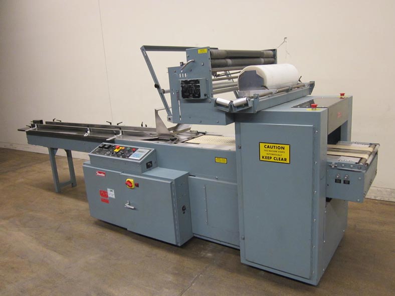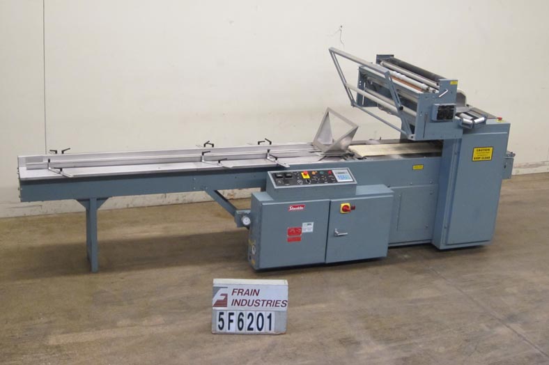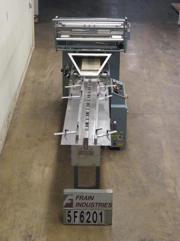 返回所有设备Shanklin型号F4A,自动,连续运动,流量通过20至75级/分钟级 - 速度取决于材料和应用。封装尺寸:3“至48”长度x 1-1 / 2“到16”宽度x 1/8“至6英寸高度。配备94英寸的长凸型送风机,1英寸高凸耳,13-1 / 2“中心,形成头部,34英寸”长真空握住腰带,18英寸宽热刀密封钳和底部静态圈密封,双重20“长排出输送机。PLC采用触控垫控制器和数字读数,带有端顶/底部热密封控制器的控制面板,运行/慢跑/转向/反向,启动/停止控制与E-STOP。46“长薄膜辊,最大薄膜宽度为22英寸折叠,44英寸扁平,具有(5)个平板,