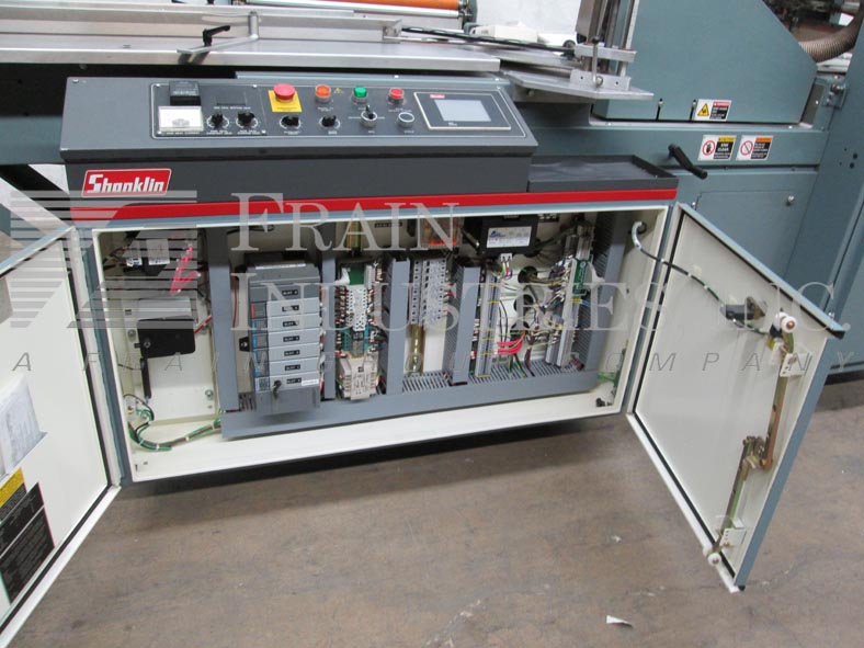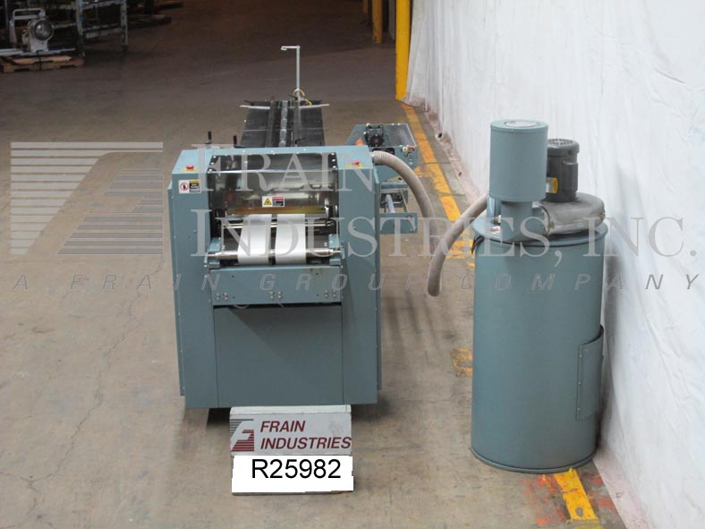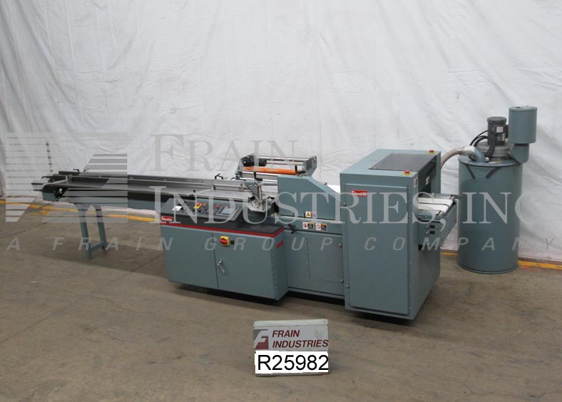 返回所有设备Shanklin F5A型,水平流动通过收缩包装器,额定从0到90线性英尺每分钟产品数量-取决于材料和应用。包装尺寸范围:3"至48"长度;宽度为1/2"至16";1/8“到6”的高度。配备108“长拖着产品在进料输送机currentley 18日”中心2 - 1/2“高x 1 - 1/2“宽凸耳,22日”前折边电影放松,与性能,双侧密封线和18”大热刀截止24”长x 18”宽饲料和双20“长x半”宽放电式输送机。控制面板有A/B控制器和触摸板控制,带有热密封,主驱动器和运行控制盘,启动,停止,e-stop按钮和安全防护。安装在基础框架与脚轮废料清除鼓。