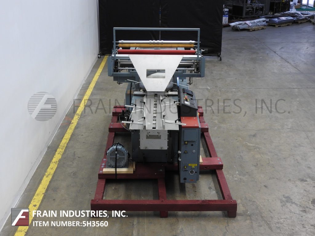 返回所有设备自动高速流动通过包装额定高达200英尺每分钟。尺寸范围:2"至15"的长度;2"至16"宽度;3/8"到3"的高度。配备12"中心,18"W步进梁密封条,16"W真空输送机和排料在38"。此外,AB PLC,控制面板,包括pkg/min,在/min,变速输送机,热封,单多个,反向/向前,薄膜张紧器,27"长x 10-1/2"W的橡胶饲料输送机,最大薄膜宽度40"平/单缠绕,静态密封,热丝横向密封