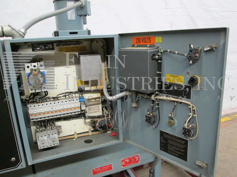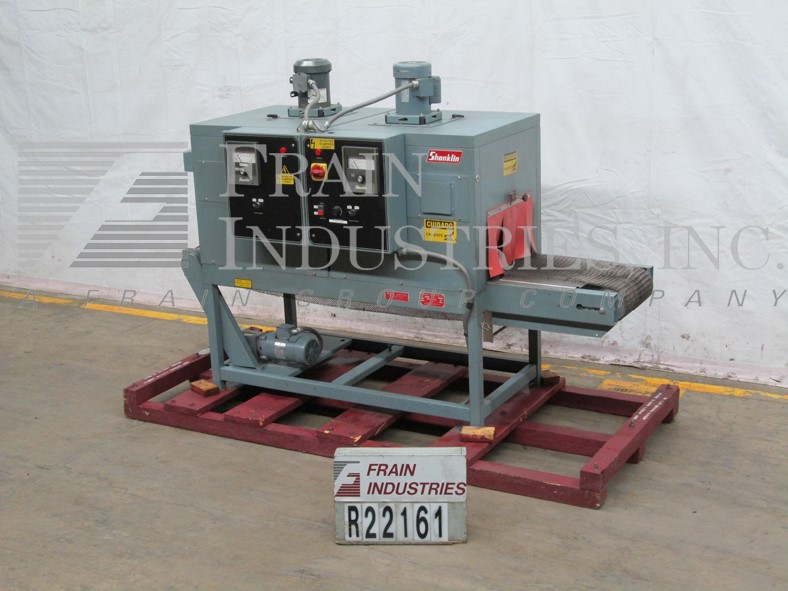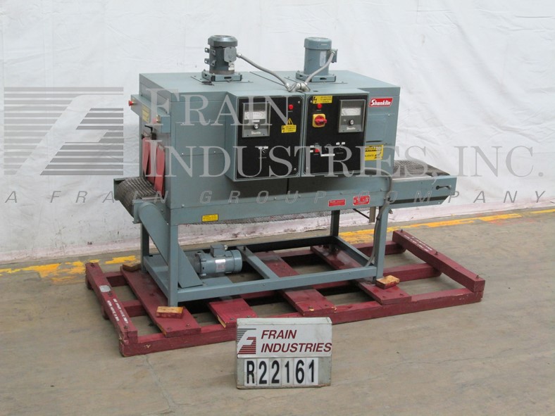 返回所有设备山克林T62型,高速,双室收缩隧道,每分钟产品数量-取决于材料和应用。配备8”高x 18”宽缝隙x 48”长双收缩室108”长网产品输送机。控制面板有25至150英尺每分钟的可变控制,温度和空气速度的独立控制,温度控制器从50至500华氏度,并设计用于适应高速收缩包装系统。安装在重型基础框架。