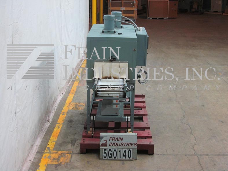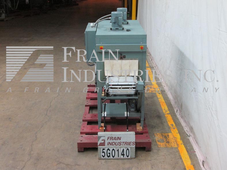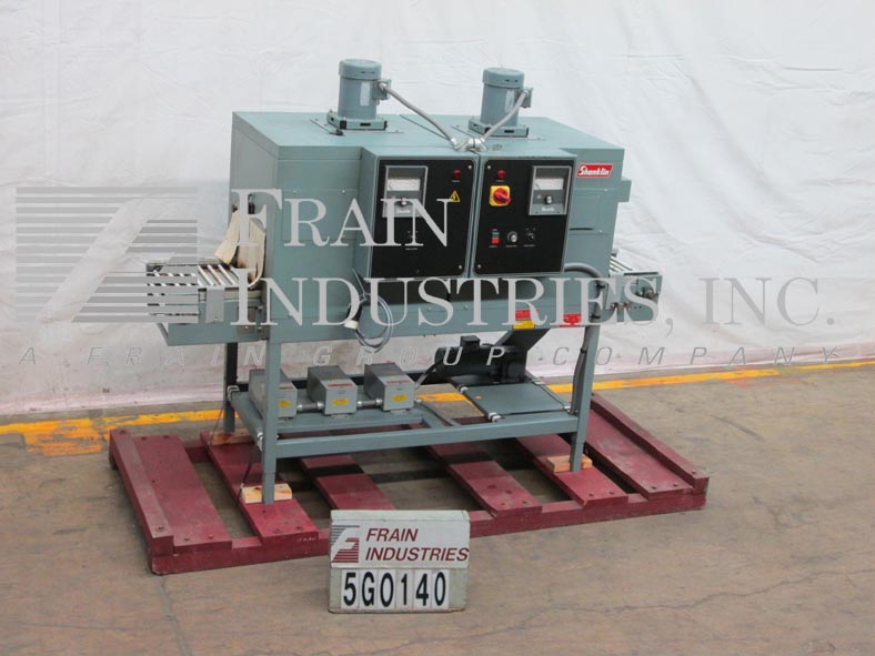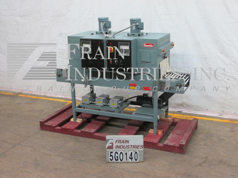 Back to All EquipmentShanklinModel T62, dual zone, shrink tunnel rated from 0 to 150 feet per minute, number of product – depending on materials and application. Total Aperture: 18" in Width; 10" in Height. Working Aperture: 17" in Width x 9" in Height; Tunnel: 60" in Length. Equipped with 90" long x 15" live powered roller conveyor, (2) top center mounted blowers, control panel with tunnel on / off switches, variable temperature controllers rated 50 to 500°F each chamber, conveyor on / off switch with speed control dial, air damper open and close switch and mounted base frame with height adjustable legs.