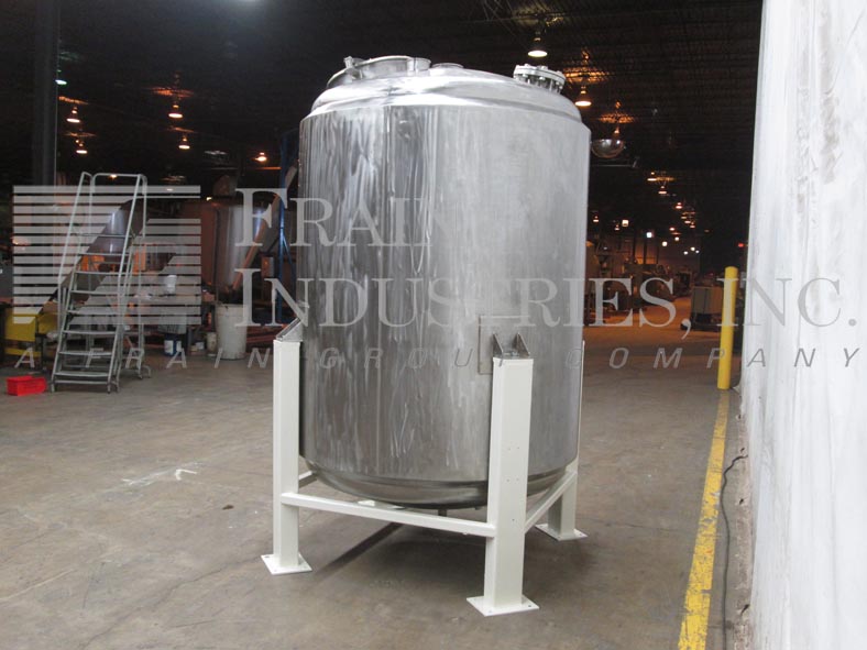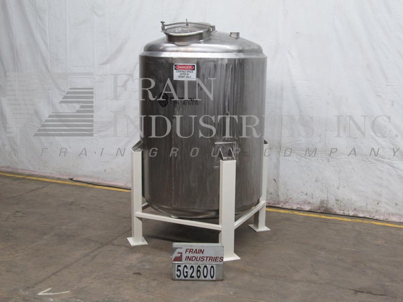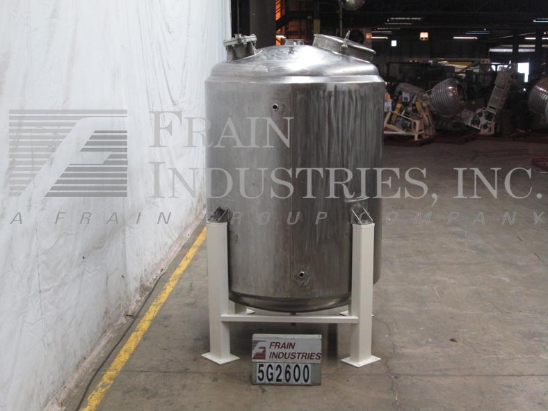 返回所有设备沙普斯维尔,700加仑,304不锈钢,夹套罐。56英寸直径x66英寸直壁。夹克评分:110 psi。配备一个圆顶顶(1)5.75"ID, (1) 3.75"ID, (1)2"ID, (1) 1.5"ID端口,以及一个20"人路与升降螺栓下盖。碟底有(1)1.5"螺纹和(1)2"螺纹端口。主要排放是(1)3”内径,18”离地间隙。安装在(4)不锈钢支腿上。