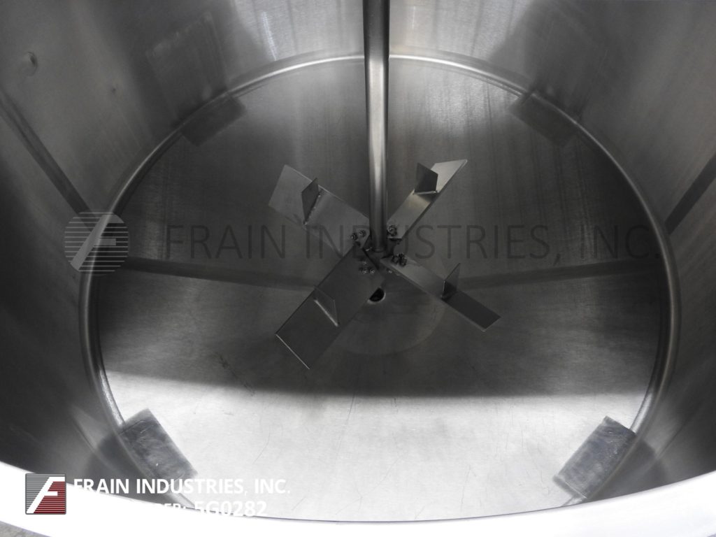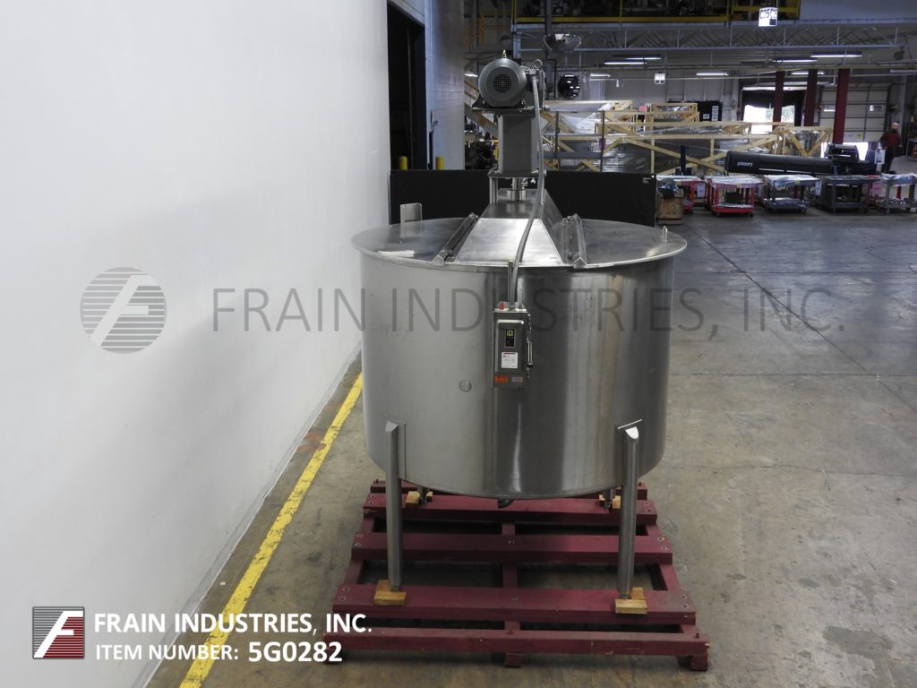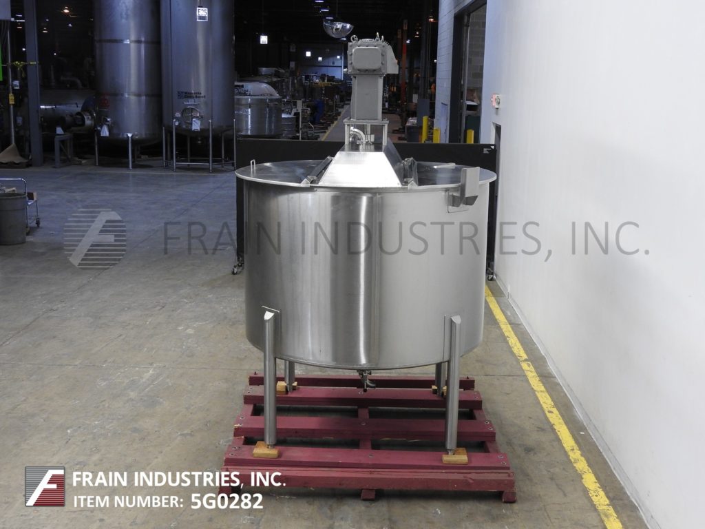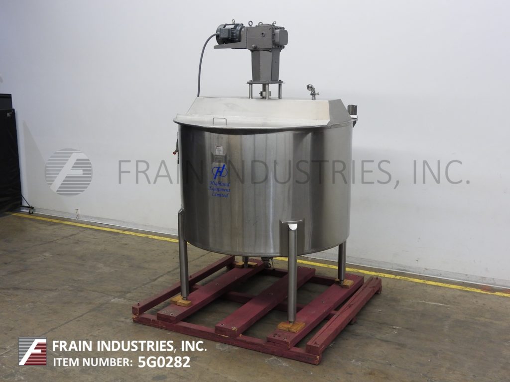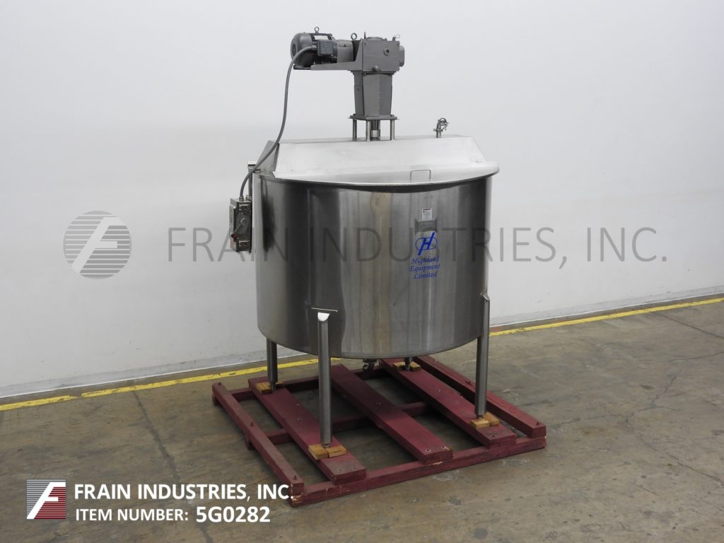 返回所有设备Highland型号750加仑,316不锈钢,单壁混合罐。容器尺寸:内径68英寸;48“直墙。配备开顶、双翻顶盖和桥式桨式搅拌器。锥形底部具有外径为2-1/2“的卫生中心底部排水口。安装在(4)个不锈钢髋臼支腿上。