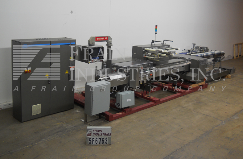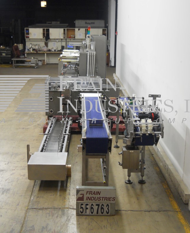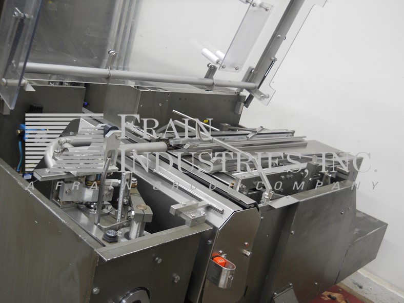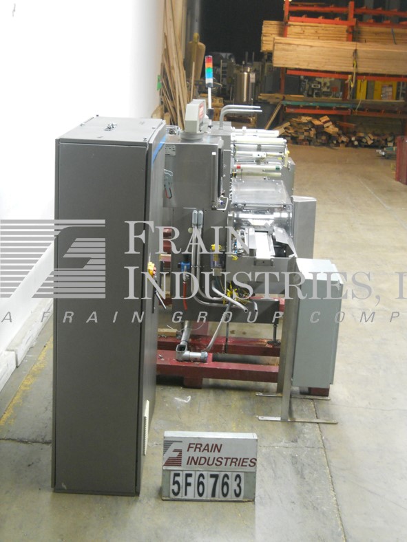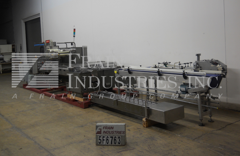 返回所有设备Sig,型号HSS,自动,水平,伺服驱动流通过枕套包装,额定从50到150包每分钟-取决于材料,应用,环境和机器配置。产品尺寸范围:长2"至8" x宽3"至6",配有适当的更换部件。配备1至5"宽x 1"厚旋转密封颚与热刀切断和鳍片密封轮,双膜架,16"长膜卷与3"外径芯和自动拼接站。控制面板有A/B 1400E摆动臂面板视图,照片眼注册,按钮停止/启动,e-停止,和统计灯条。12"宽x 116"长柔性连杆在饲料,次要12"宽x 78"长柔性连杆在饲料输送机与星形轮。134"长凸耳产品输送通过成型头与__" H凸耳在__"中心,和一个37"长x 4" W白色氯丁橡胶产品排出输送机33"放电高度。CE评级。安装在重型基础框架与水平腿。