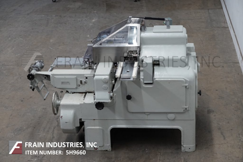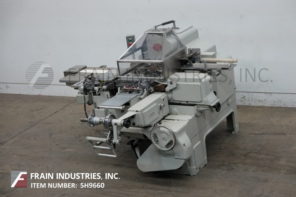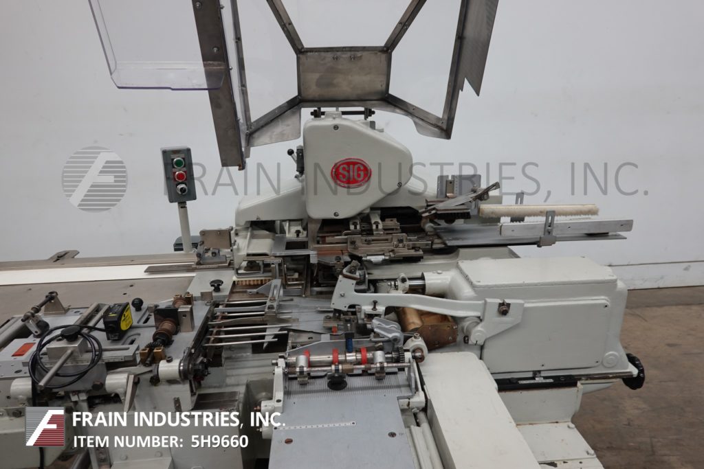 返回所有设备SIG型号C-Bar,巧克力箔和纸片包装机额定从25到100包每分钟-取决于材料和应用。31毫米至79“宽度;6mm ~ 19mm厚。配备42“长x 6”宽在饲料输送机9“胶卷卷,与胶卷切断,密封棒和16“刷盒卸料输送机和包装离开桌子。控制面板设有jog、reverse、switch和start / stop按钮控制,联锁安全保护。安装在(4)腿底座框架与锁定脚轮。
