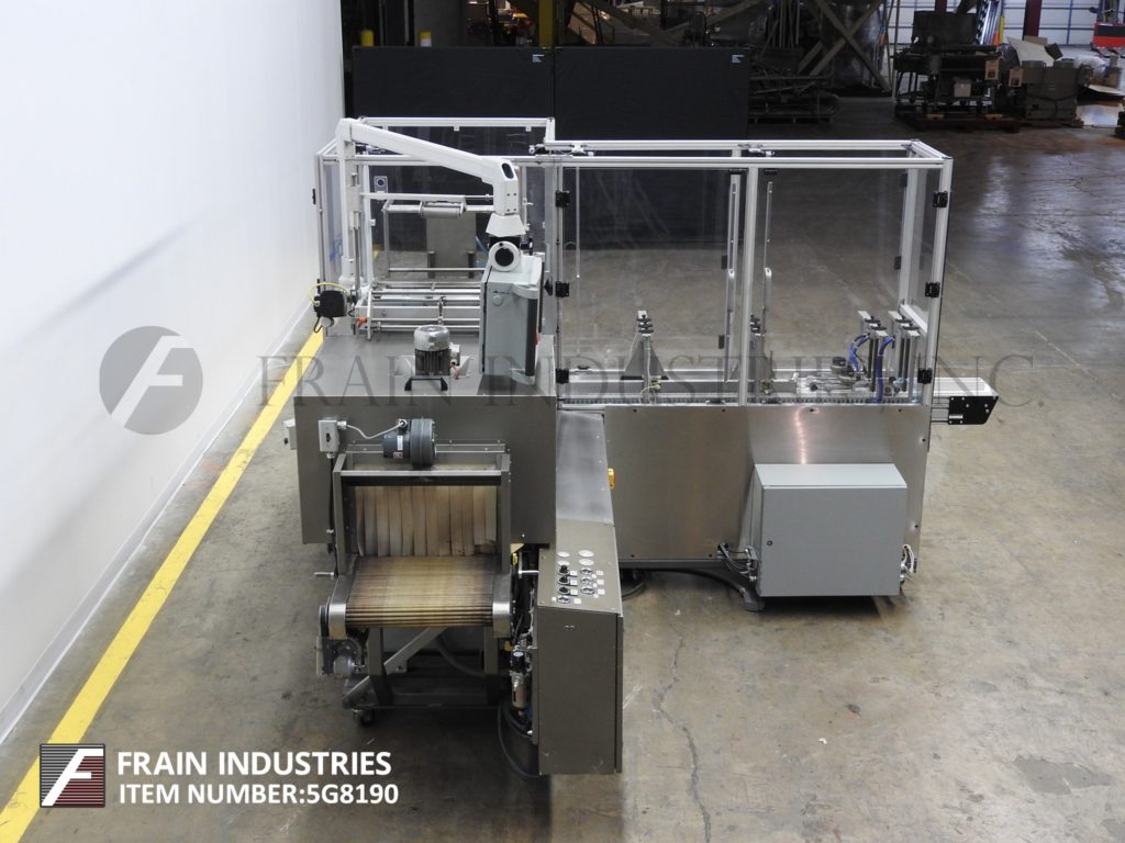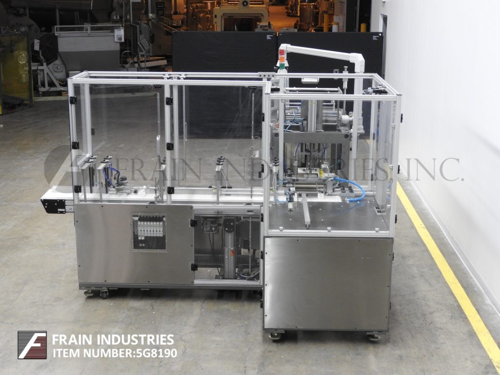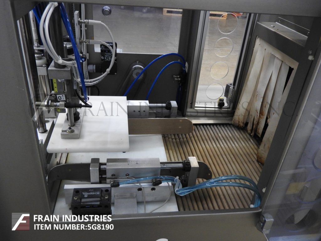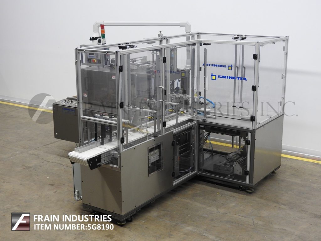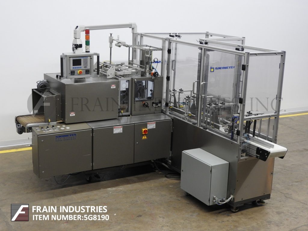 返回所有设备Skinetta,型号ASK 450,自动,间歇运动,收缩捆捆机和隧道。额定从5到30循环每分钟-取决于材料,应用,包装模式和机器配置。产品尺寸范围:1“- 10”长度;宽度1“至12”;高度可达10英寸。配备了一个10“宽x 96”长的,一到两个车道,在饲料输送器与一个可调节的整理区域高达10“宽x 12”长和直角气动转移臂。捆扎器有顶部和底部的薄膜辊高达17“宽的网,顶部的薄膜穿孔轮,18”宽的热密封钳和产品顶部按住垫,以保持捆而被密封。集成收缩隧道12“高× 17”宽× 30”长加热室,60“长× 17”宽活辊输送机和冷却风扇。控制面板有一个AB PLC与AB PanelView Plus 600显示屏与触摸板控制,按钮启动/停止和数字温度控制器密封和隧道。