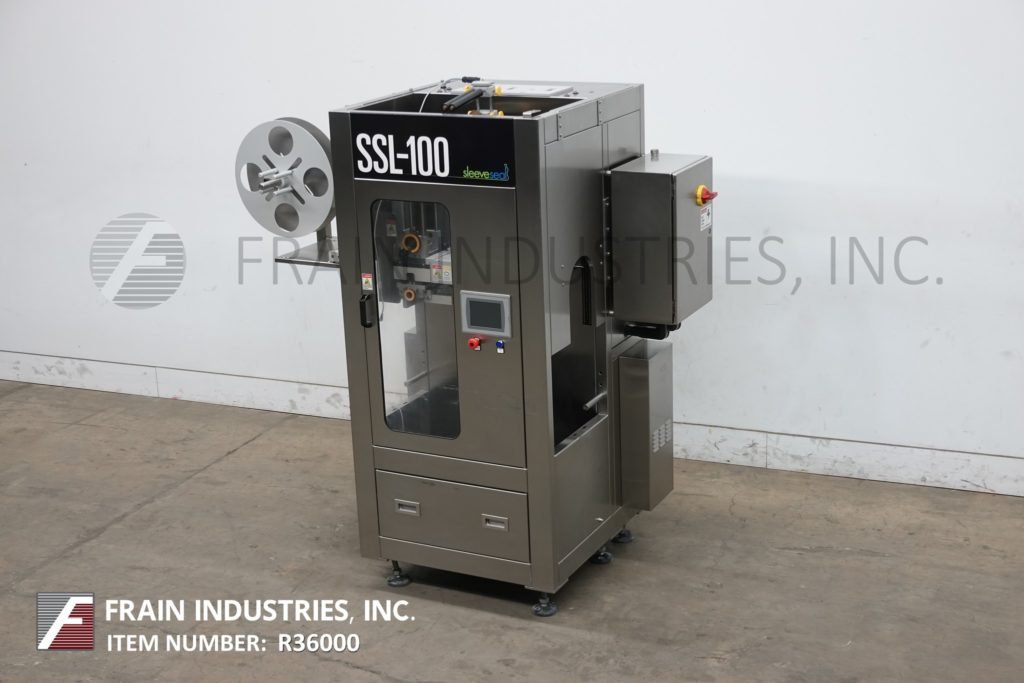 Back to All EquipmentSleeve Seal, Model SSL-100, Automatic sleever labeler. Rated from 10 to 100 sleeves per minute – depending on materials, application and machine configuration. Bottle size range: 25mm to 125mm in diameter. Label length: 25mm to 250mm in height. Equipped with 20″ OD label reel and touch screen HMI.