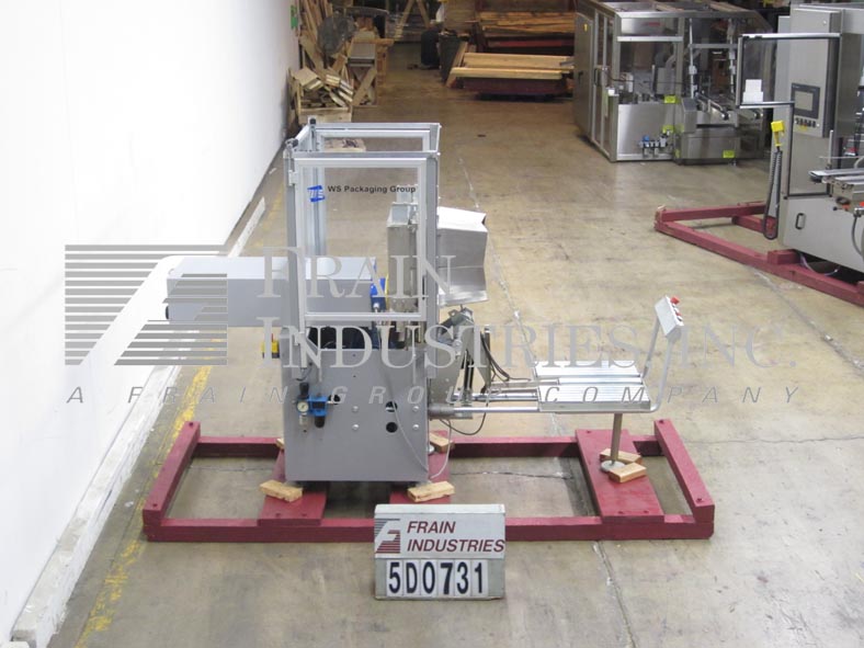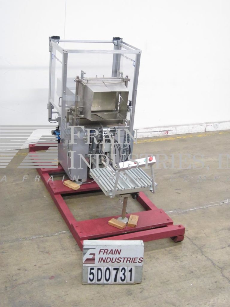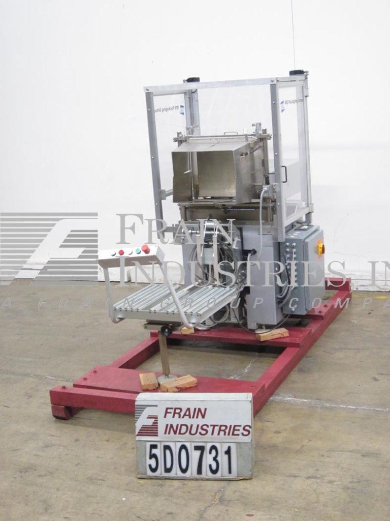 返回所有设备SMS,半自动侧载盒包装速度取决于材料,应用和操作员灵活性。能够包装案例(17-1 / 2“ - 20-3 / 4”)L X(13-1 / 2“ - 15”)W X(16英寸 - 35“H)和产品(0” - 17-1/2“)L X(2-1 / 4” - 7-1 / 2“)W X(0” - 2-1 / 4“)H。采用不锈钢触点,手工曲柄调整,21-1 / 2“L X 19-1 / 2”W滚轮带走输送机,照片眼睛适当的产品放置,以及侧面产品摄入。配有脚踏板控制,按钮控制和带电气互锁的屏障保护。安装在温和的钢框架上,有五个可调节的脚。操作员在自动装载漏斗上放置空盒。机器堆叠一层产品,将其包装到盒子中,并将盒子降低到滚筒输送机上。