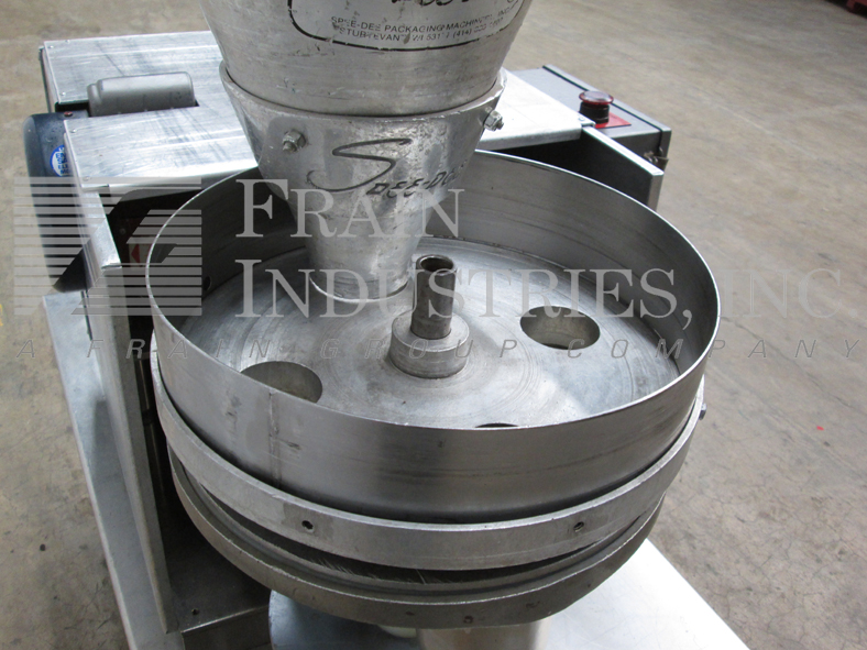 返回所有设备Spee Dee型号四袋容积填料额定从4至60指数每分钟与容器的数量-取决于材料,应用和机器配置。杯径范围:1"到4";深度0.62至12”。填充范围:0.5到185立方英寸每个头。配备12"直径37"深不锈钢料斗,13"直径板,数字显示控制。更换所需零件以适应尺寸范围。
