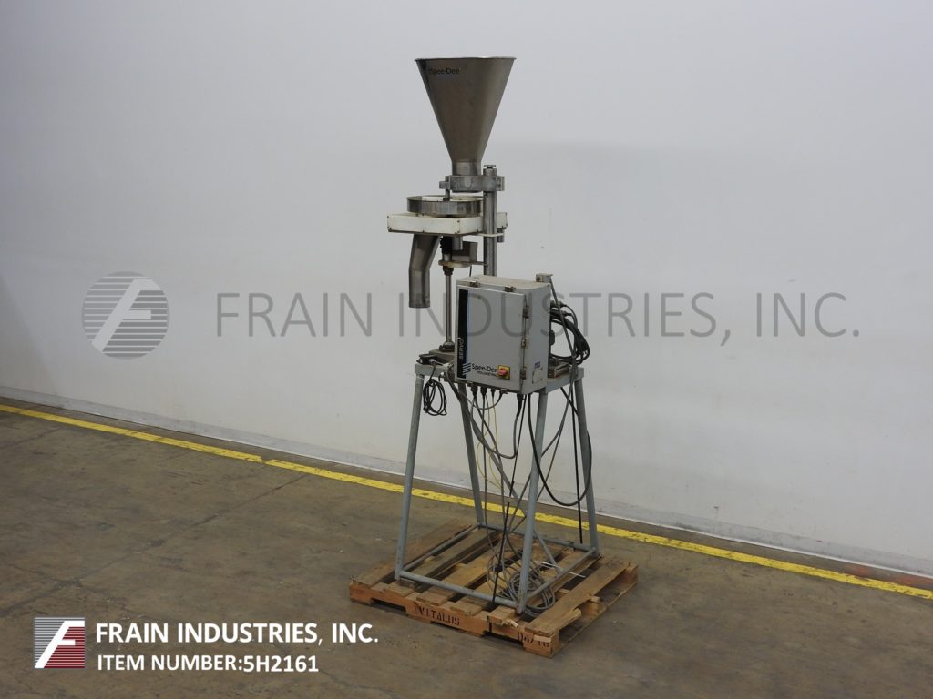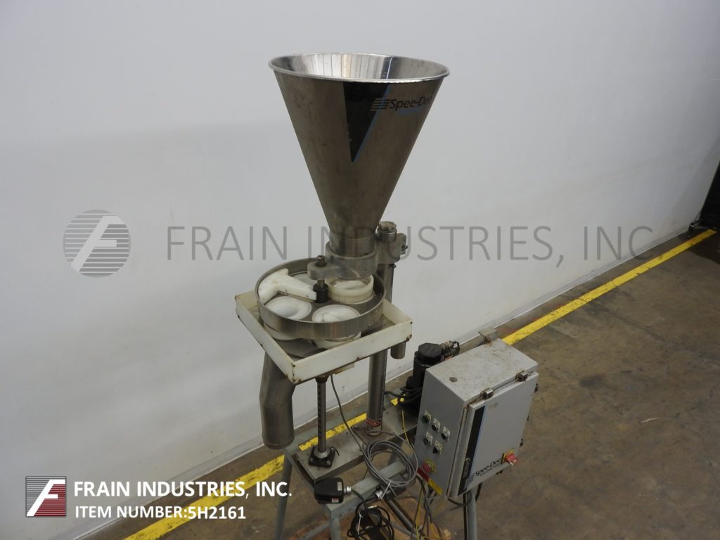 返回所有设备Spee Dee,型号CHS,(4)口袋不锈钢,伺服驱动,带有容器数量的容量填充物 - 取决于材料,应用和机器配置。杯尺寸范围:直径1.0“至6.0”;0.62至25“深度。填充范围:0.5至700立方英寸。配备20”OD X 26“深不锈钢产品料斗,16”OD板具有(4)填充口袋,配有产品平整刷,16“长产品放电用4½“OD产品开口,目前具有55”排放高度的OD产品开口。控制面板开/关电源和卷较少/更多的开关,单索引和电子停止按钮。
