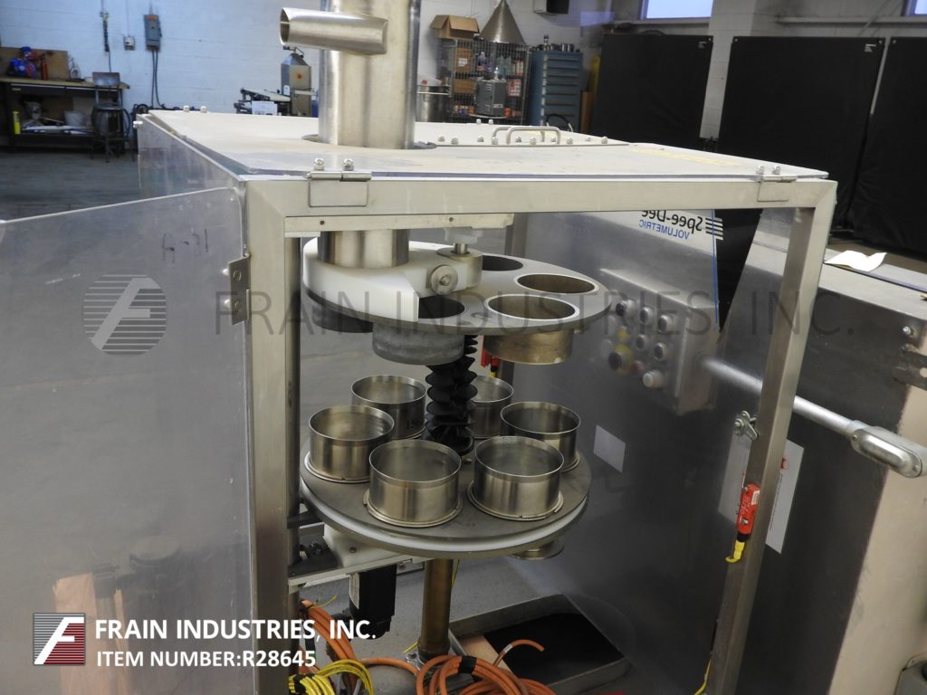 返回所有设备Spee Dee,型号CJ6S416,(6)口袋伺服驱动的体积填料。每分钟10至140个指标,容器数量 - 取决于材料,应用和机器配置。杯尺寸范围:直径1“至5½”;深度0.62“至14”。填充范围:0.5英寸至300英寸(具有适当的变化部件)。配有6个“直径充电和22英寸”OD板,具有(6)伸缩填充口袋。安装在带有按钮单索引的不锈钢底座上。开始/停止和音量更多/更少的开关。