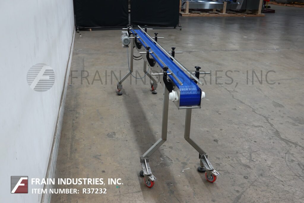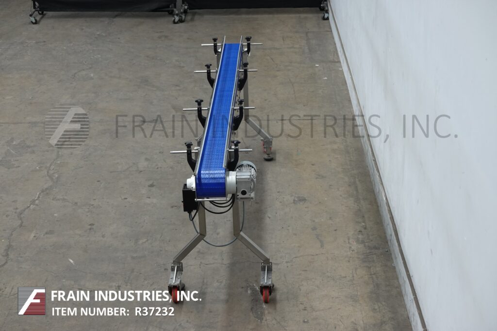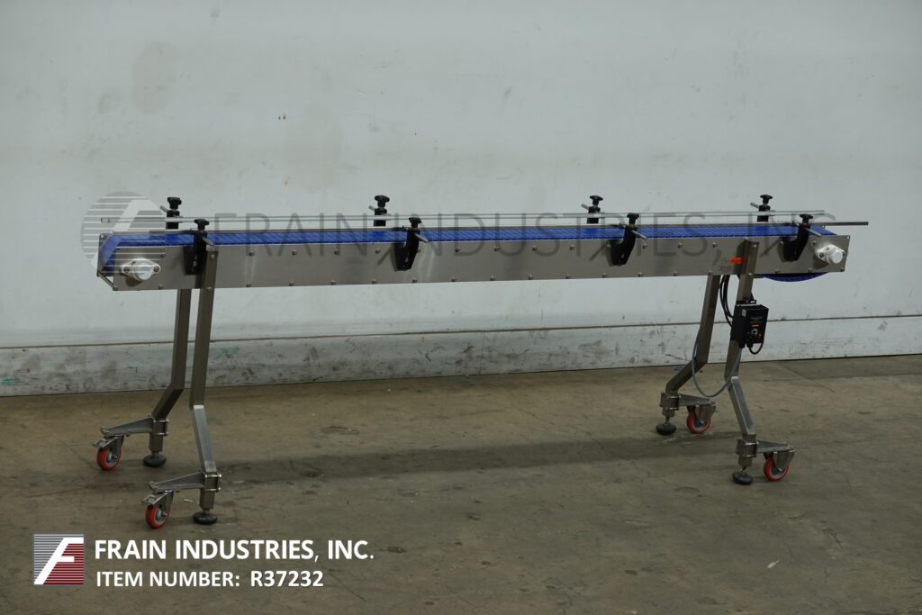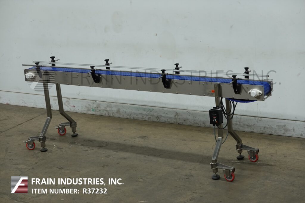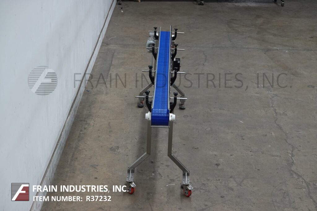 Back to All EquipmentSpeedway Conveyor, stainless steel frame table top conveyor. Equipped with a 6" wide x 110" long belt with a 36" infeed / discharge height, casters and variable speed controller.