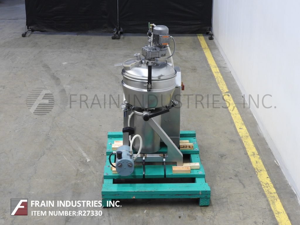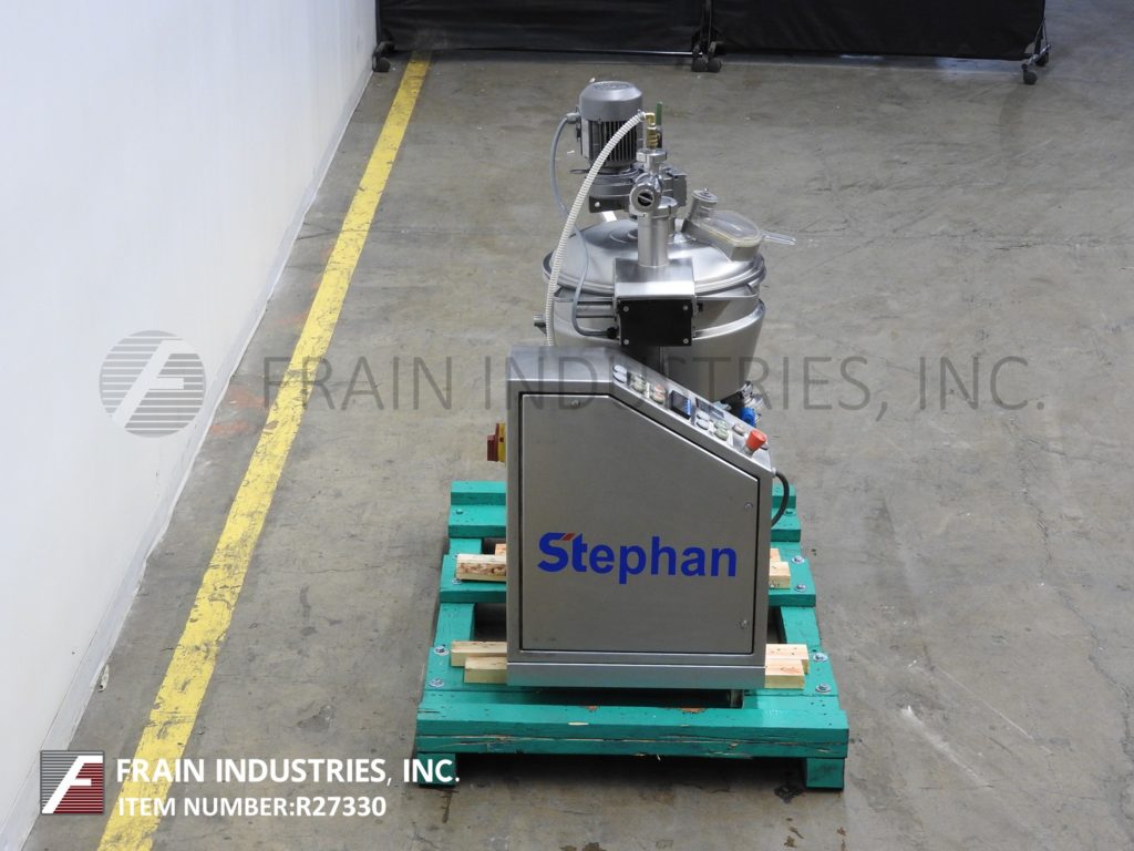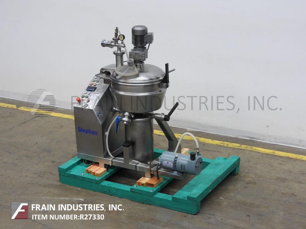 返回所有设备Stephan,型号VCM44E,40夸脱,垂直,碗斩波器/混音器,每小时磅数磅 - 取决于材料,应用和机器配置。配备19½“ID X 11”深型钢混合碗,2½“OD / 2”ID Tri-Clamp风格蝶阀漏极,(2)7“长底斩波/混合刀片,90°倾斜,翻转/螺栓下盖,顶部安装的真空压力表和低压夹套。½HP顶侧刮板电机驱动器和两种速度(1750/3500 rpm)(8/12)HP底部斩波刀片电机驱动。包括1½HP真空泵和控制包使用开始/停止,慢速/快速,按钮与数字读数和e-stop的按钮。