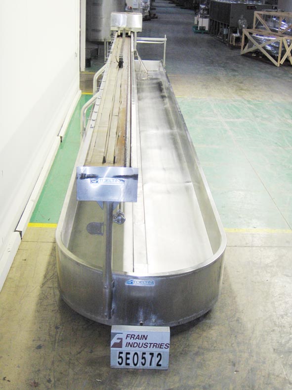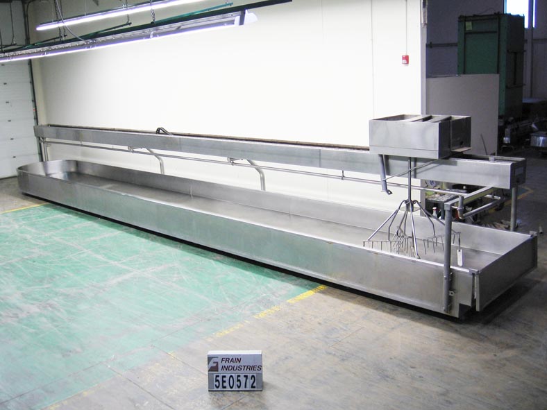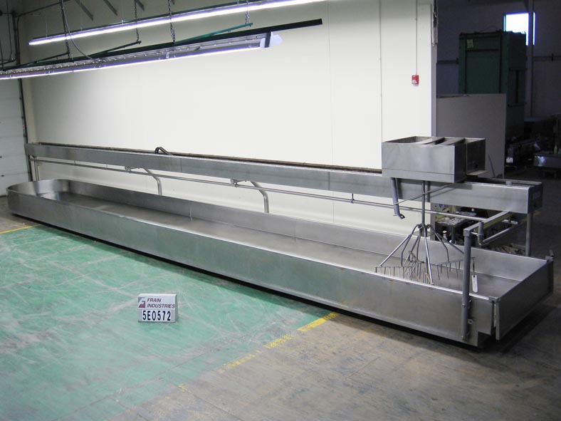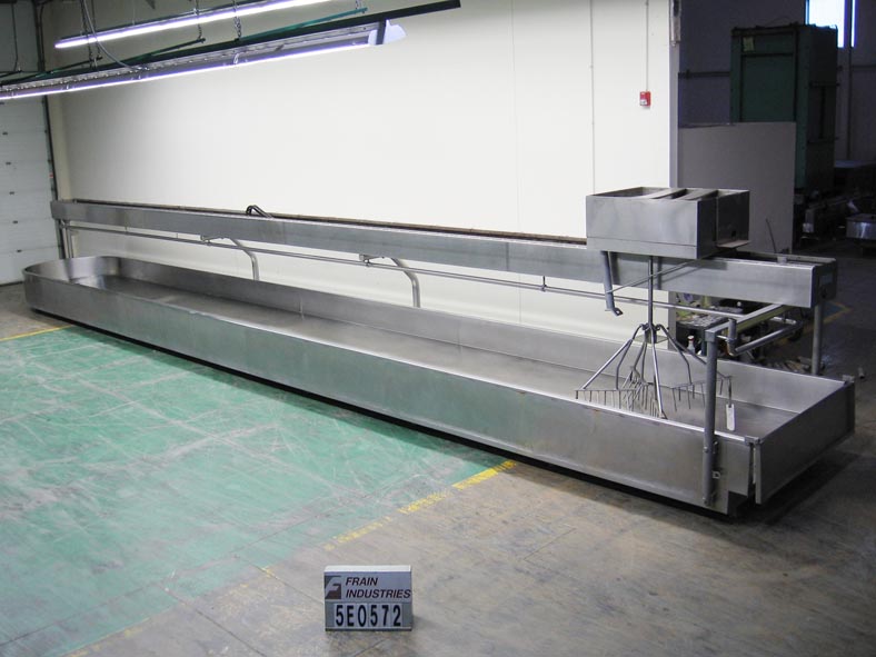 Back to All EquipmentStoelting上帝y duty, stainless steel, jacketed, cheese curd processing table with batch working capacity up to 4450 lbs on (granular) and 4100 lbs on (milled) product. Has 46′ 6" Long x 66" Wide x 16-1/2" Deep inside dimmension processing table, sloped to 46′ Long x 6-1/4" Wide x 3" Deep center drain trough, with filting screens. Full hot water, low pressure jacketed, has a 1 Hp motor drive for hi / low speed control of product travel, and 3 Hp drive for hi and low product mixing, with (4) rake style product agitator with heavy duty stainless steel frame. Used for either salting and draining of whey, or salting draining and matting of whey.
