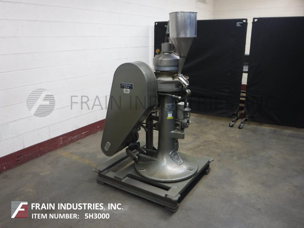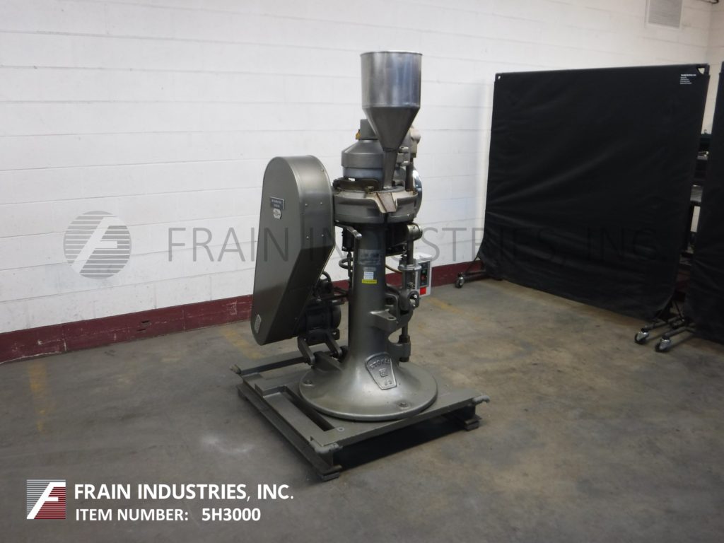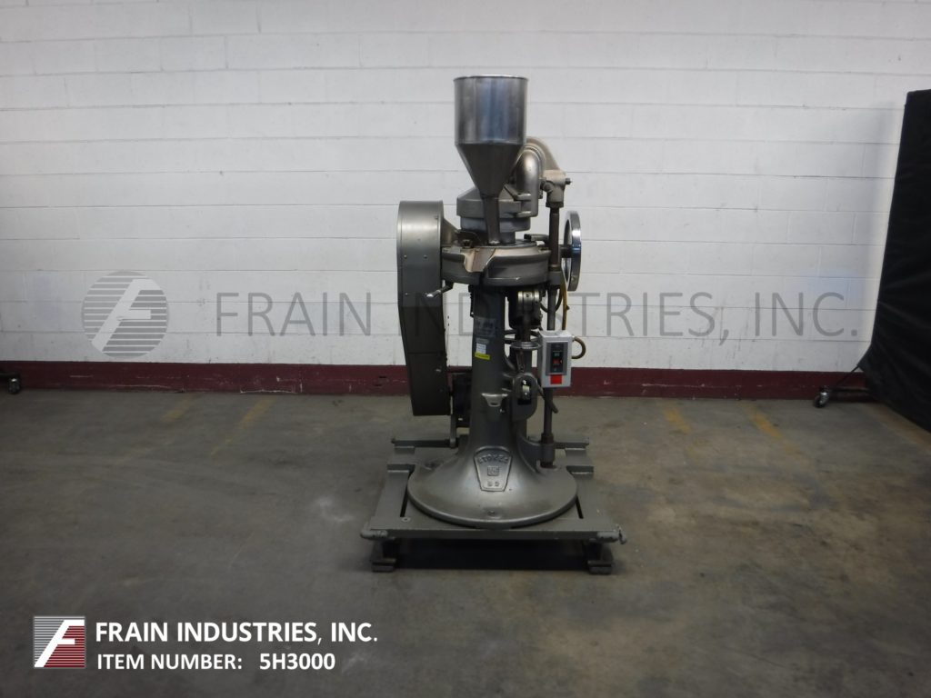 返回所有设备斯托克斯,512型,自动,16个工位,旋转,压片机额定从350到650片每分钟-取决于材料,应用,机器配置和运行环境。压缩:可达4吨。最大片剂直径(5/8)";最大填充深度(11/16)”。配备3 / 4“外径键控上冲床,1 / 4”外径模具和1½Hp电机到链轮驱动。安装在42“x 40”底座框架。客户提供模具。