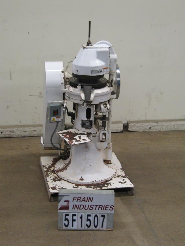 返回所有设备斯托克斯16工位旋转压片机。额定高达650片每分钟-取决于材料,应用,机器配置和运行环境。最大工作压力:4吨。最大片剂直径圆:11/16",最大片剂或胶囊形长度3/4"。配备不锈钢料斗,黄铜进料架,上下同时压缩,自动泄压。安装在36 x 36的基础框架。客户提供模具。