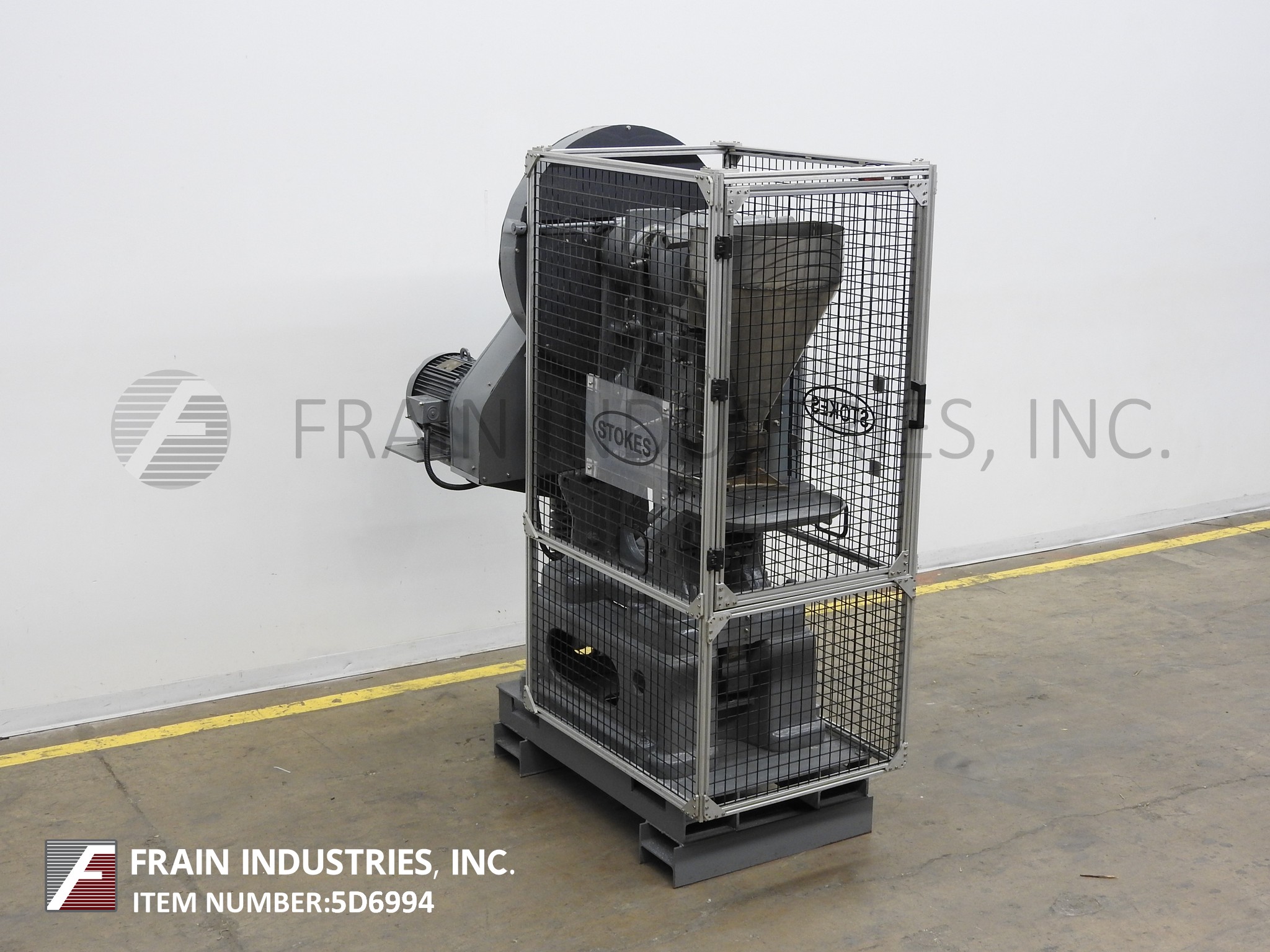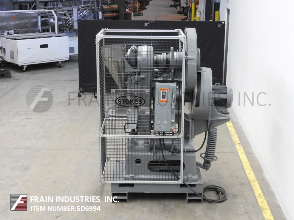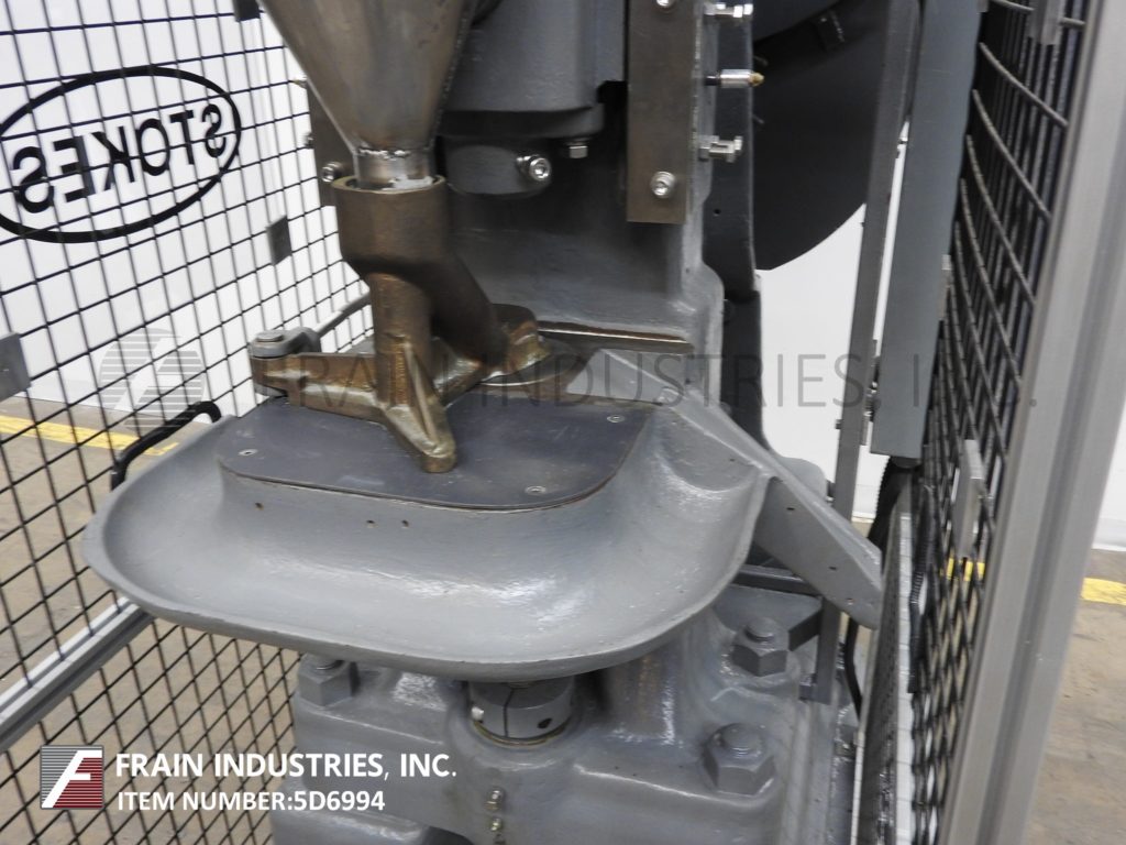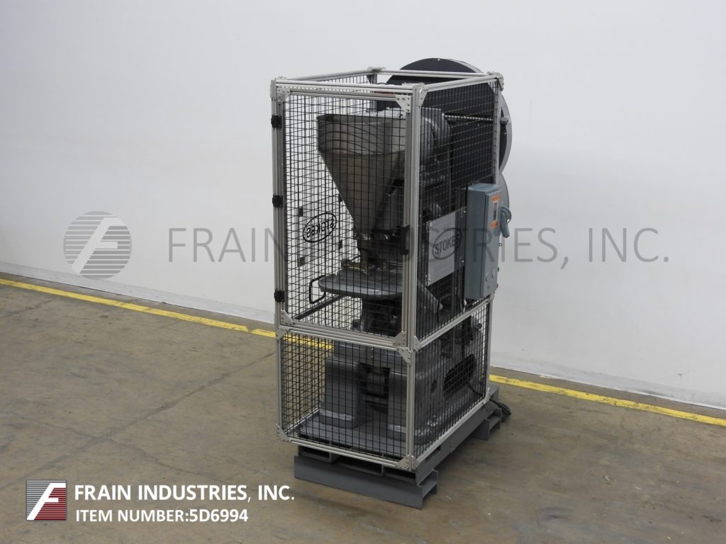 返回所有设备Stokes Model R,自动单头“DD”平板电脑按评级为10至48片/分钟 - 取决于材料和应用。能够2“深填充和3”至4-1 / 2“OD片剂。最后设置1-1 / 2“OD片剂,具有20吨压力,黄铜粉末进料框架,8”长×4“宽排出。通过5 HP电机驱动器提供固定速度驱动和停止,开始按钮控制。用笼式守卫安装在重型职责框架上。