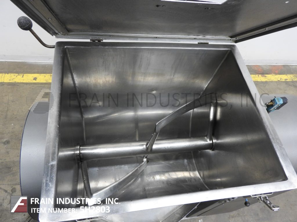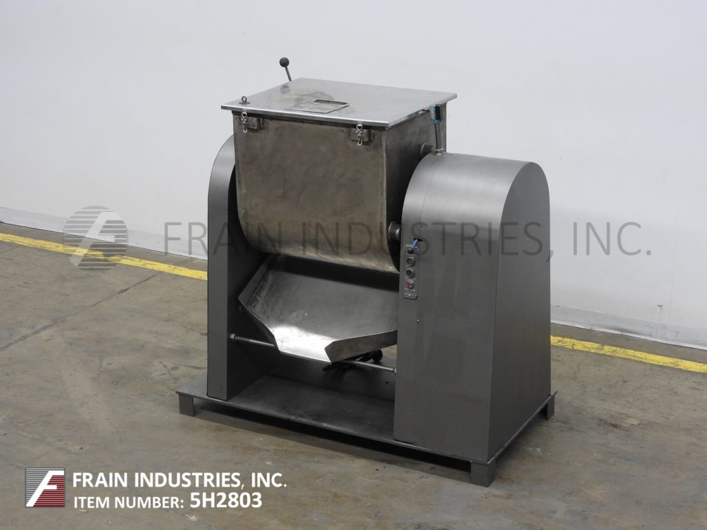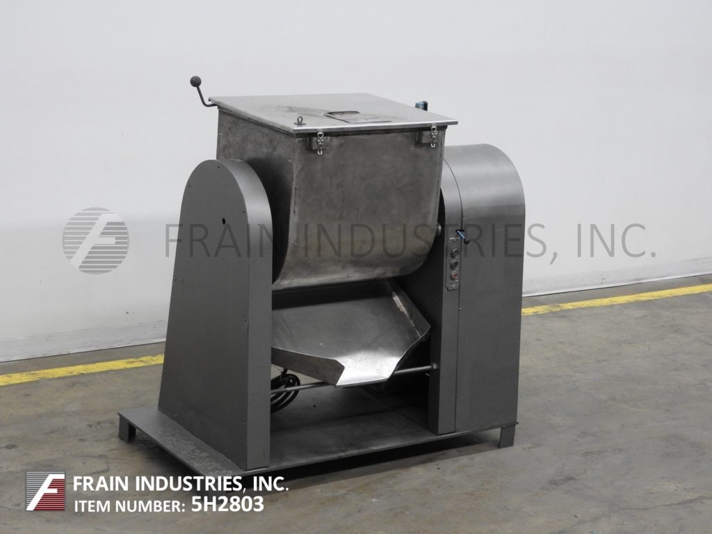 Stokes单臂,304不锈钢,Sigma风格搅拌机,工作能力高达4.7英尺。室尺寸:27“长度; 22”宽;27“深入,配备单秒形混合臂,铰接盖,3个HP电机驱动器和手曲柄倾斜放电。带按钮的控制面板开始/停止。