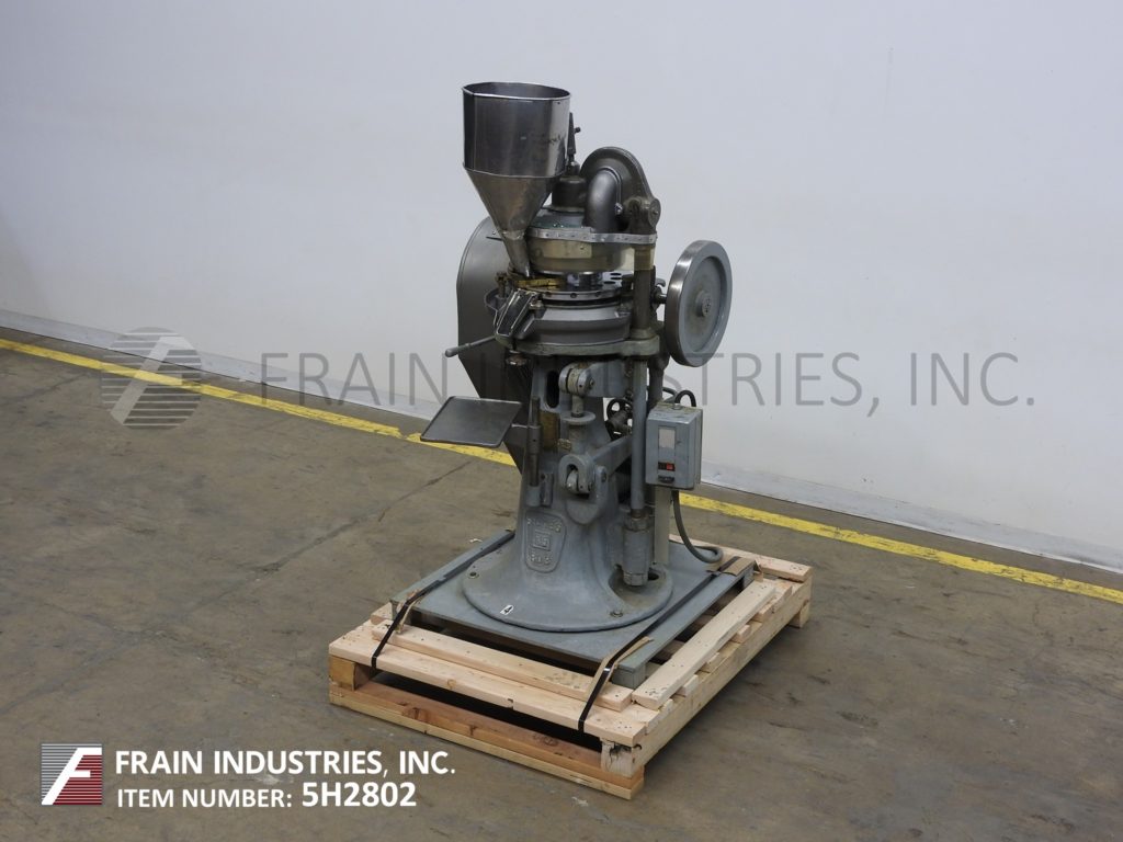 返回所有设备Stokes,型号D3,16站,旋转平板电脑,每分钟350至650粒 - 取决于材料,应用,机器配置和营业所在。压缩:高达8.5吨。最大平板电脑直径为25.4mm。在下板上配有1“OD键点的模具,1½”OD在下板上模具。安装在36“x 36”基座框架上。客户提供工具。