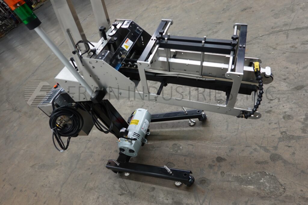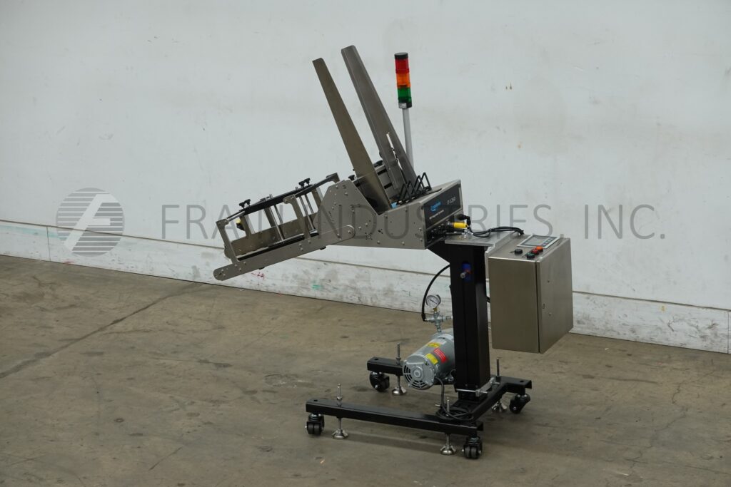 Back to All EquipmentStreamfeeder, Model IT-1250U, Automatic, servo driven, "U" card feeder with belt speeds up to 7000" per minute and number of product – depending materials, application and machine configuration. Stainless steel construction, designed to feed, form and dispense a variety of cards, trays and labels in U, J and L configurations, then be placed on a variety of conveyor streams for product placement and wrapping. Product size: 2.5" to 14" in Length; 2" to 12" in Width per application and .003" to 1" in Thickness. Equipped with 24" high stainless steel one-knob side guide positioning and adjustable former, vacuum assit, miss-detect and product separtator. Streamfeeder control panel has A/B PLC controller with HMI touch screen interface and e-stops. Mounted on height adjustable stand.