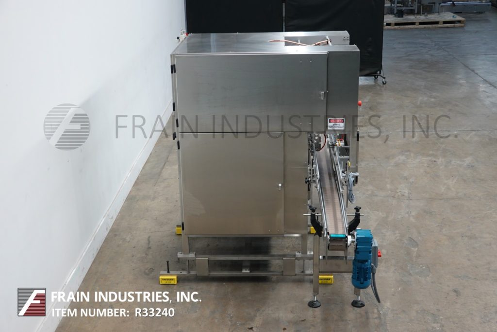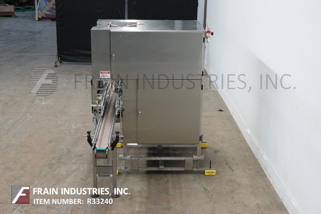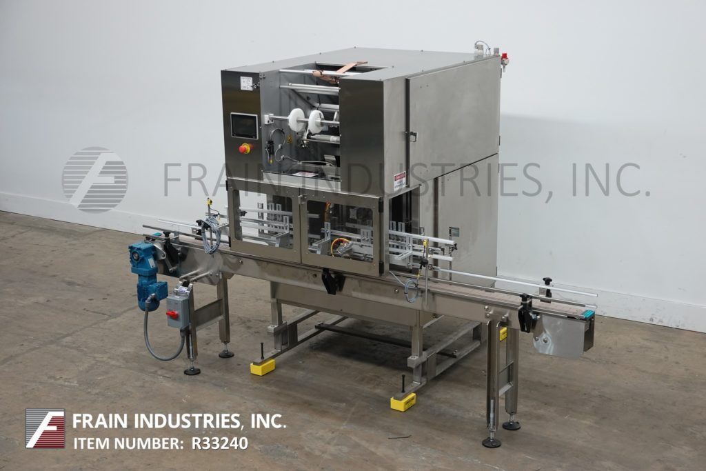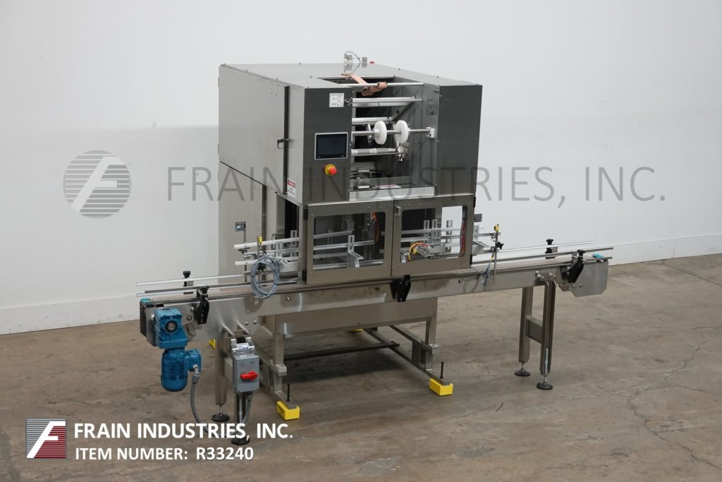 返回所有设备Styrotech, ST1550型,自动,弹性套筒。额定每分钟10到30个容器-取决于材料和应用。能够处理各种各样的容器类型,形状和大小包括大量来自8盎司的罐子和瓶子2½加仑,集装箱尺寸范围为2¼“9½OD x 6½“宽x 13½”高和layflat电影大小从3“15”和标签大小9¼”在宽度与适当的变化部分。薄膜类型和规格:聚乙烯,2.0至3.0毫升,10%拉伸,无容器/无标签传感器。控制面板有A/B控制器和触摸屏人机界面。安装在重型框架联锁安全防护和4½“宽x 120”长的delrin输送机。