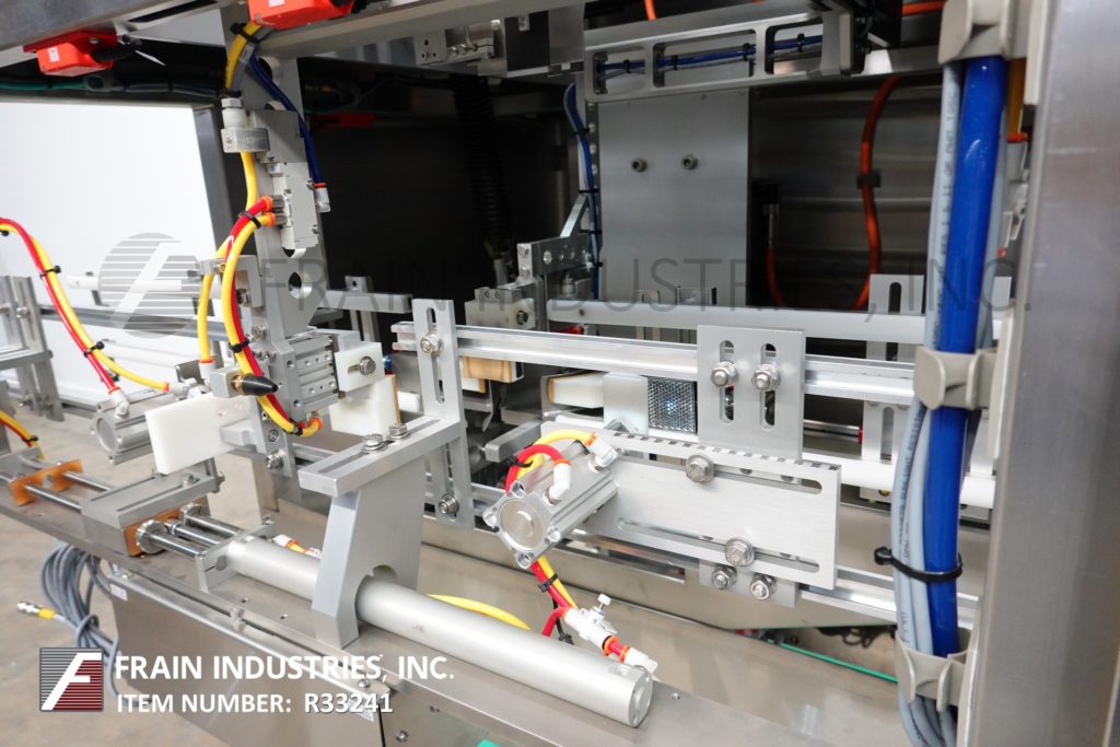 返回所有设备Styrotech, ST2650型,自动,伺服驱动,弹性套筒,额定每分钟10到60个容器-取决于材料和应用。能够处理各种各样的容器类型,形状和大小包括大量来自8盎司的罐子和瓶子2½加仑,集装箱尺寸范围为2¼“9½OD x 6½“宽x 13½”高和layflat电影大小从3“15”和标签大小9¼”在宽度与适当的变化部分。薄膜类型和规格:聚乙烯,2.0至3.0毫升,10%拉伸,无容器/无标签传感器。控制面板有A/B控制器与A/B面板视图和A/B伺服,按按钮控制主启动/停止,周期启动/停止和有控制拨号运行/慢跑设置。安装在重型框架联锁安全防护和4½“宽x 120”长的delrin输送机。