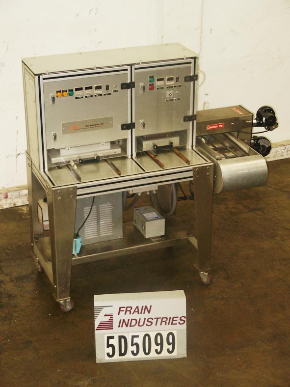 回到所有设备半自动,双站,蛤壳,拉伸包装和泡罩包装机。有8“x 8”密封区域,32“L x 9”W 3带子输送机,8“L热隧道带9”W x 2“H光圈,再循环水箱,带电气互锁的屏障用于热定时器的控制器,FORM定时器,预热温度,密封定时器,密封温度,输送机速度和安装在脚轮上的水冷却。