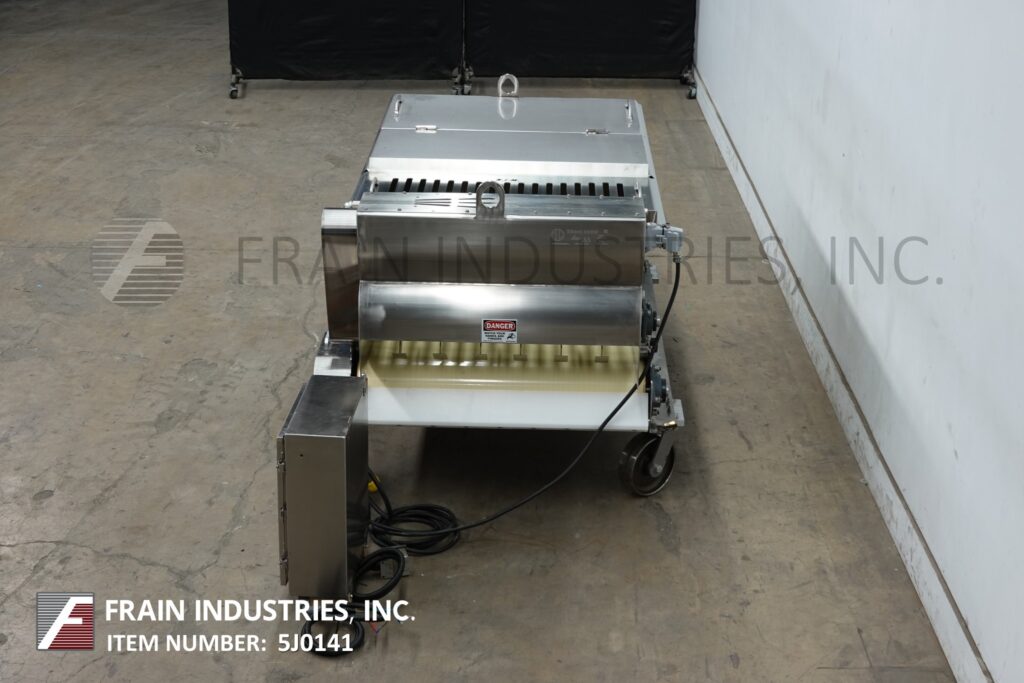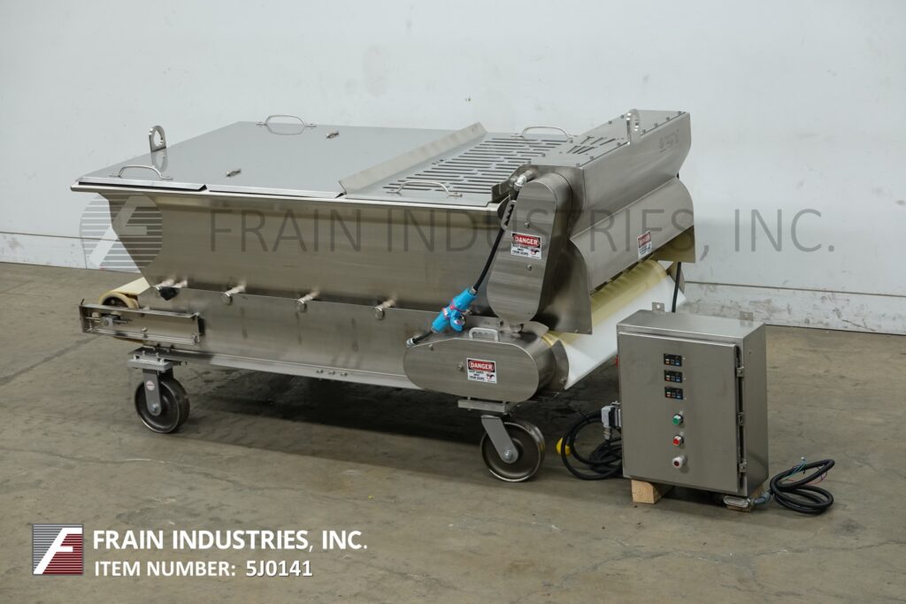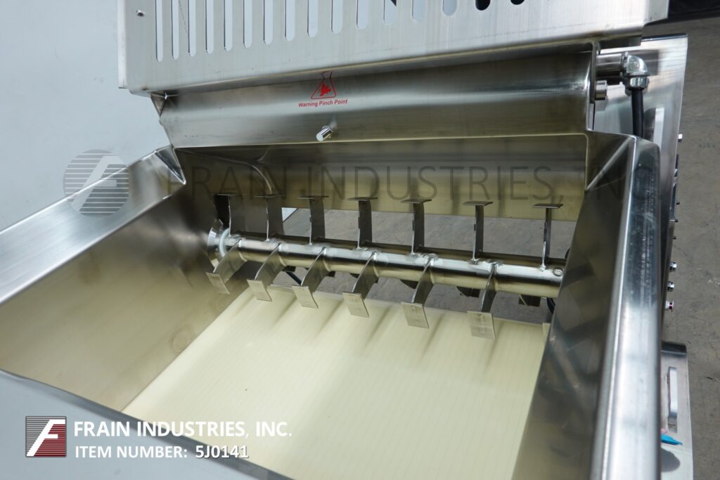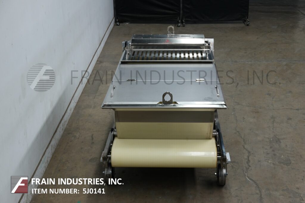 Back to All EquipmentSureKap Model SK600, Automatic, inline, stainless steel, 3 station, 6 spindle roll over conveyor capper with number of containers per minute – depending on materials and application. Cap size range: 8mm to 110mm. Equipped with 24" long x 2" wide single container gripper belts, (3) stations (6) spindles with (2) sets of mechanical clutches for increased torque control and is hand crank height adjustable. Control panel has spindle, gripper and cap belt push buttons and speed control dials. Mounted on base frame with leveling legs.