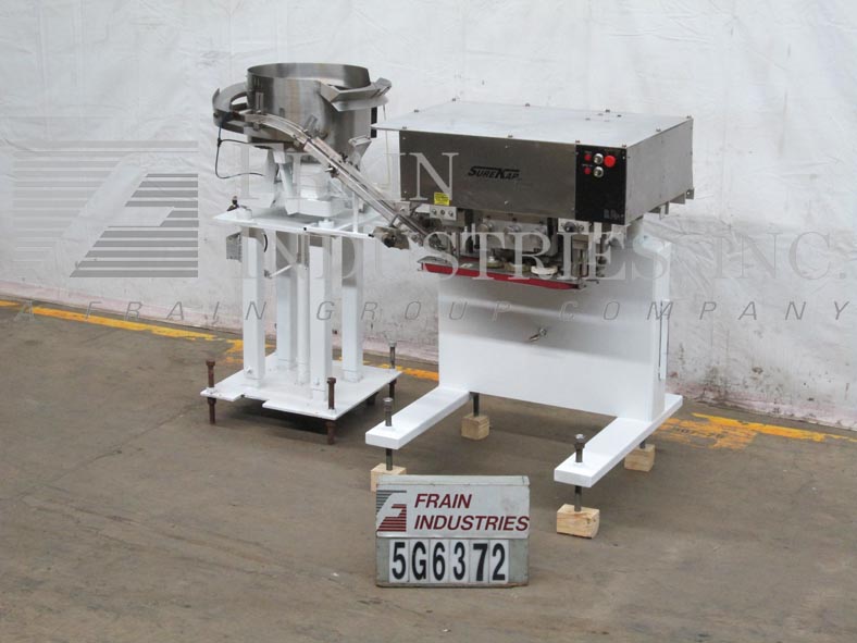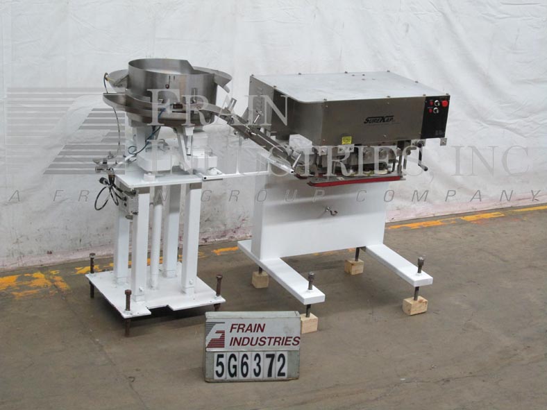 返回所有设备Surekap Model SK600,自动,内联,滚动输送碗送料器,封盖/重击配件数量每分钟 - 取决于材料,应用。配备20“OD盖子进料碗到前旋钮可调节3站,6个主轴盖紧牢固,带(2)套离合器和24”长x 1“宽单个容器夹持带和手曲柄高度可调节框架。控制面板有主轴和夹具速度控制拨盘,带有起始/ e-stop按钮,均安装在高度可调基板上。