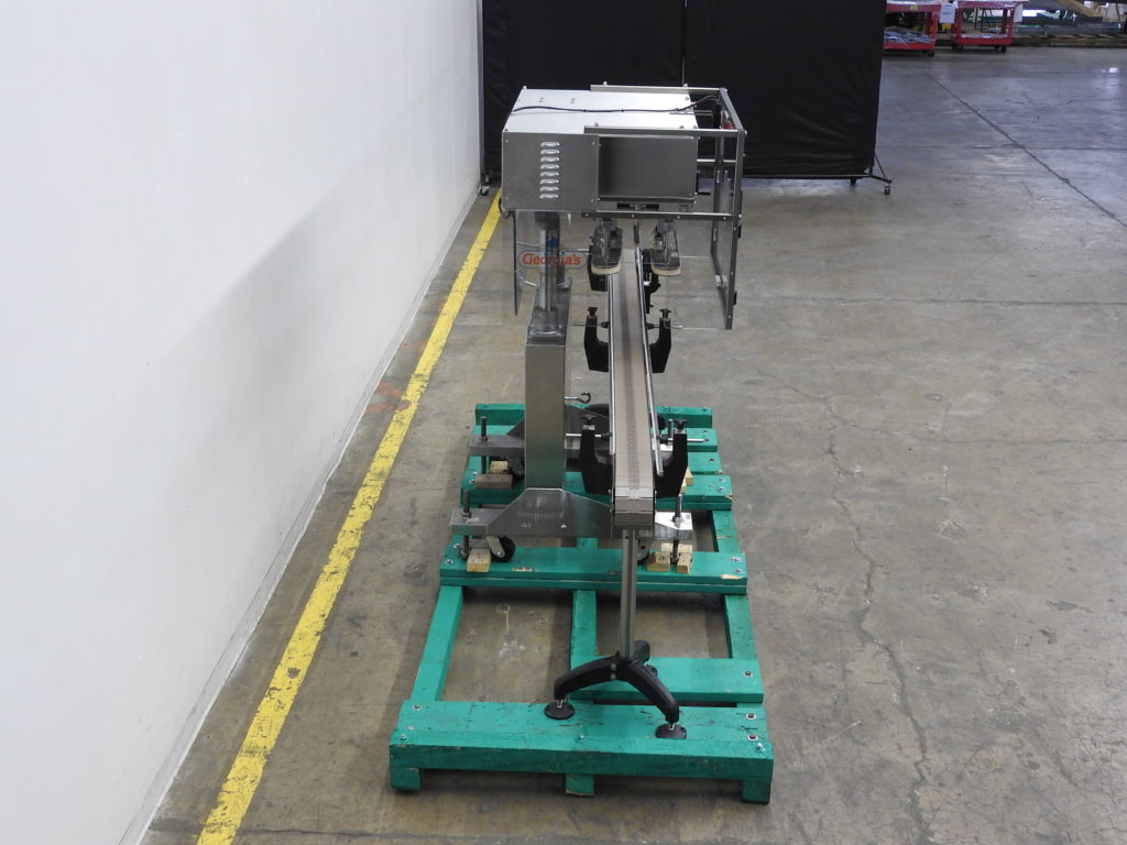 返回所有设备SureKap型号SK600,半自动,内联,不锈钢,3工位,6主轴帽拧紧和重新扭转机,输送带额定为每分钟10至90个容器-取决于材料,应用和操作熟练度。瓶盖尺寸范围:直径8毫米至110毫米。配备120"长x 4-1/2"宽不锈钢容器输送机,24"长x 1"宽单容器夹持带,(3)手曲柄可调主轴站(2)套离合器。控制面板与主轴和夹具控制刻度盘,启动和e-stop按钮。安装在重型不锈钢“C”基础框架与脚轮和调平腿。