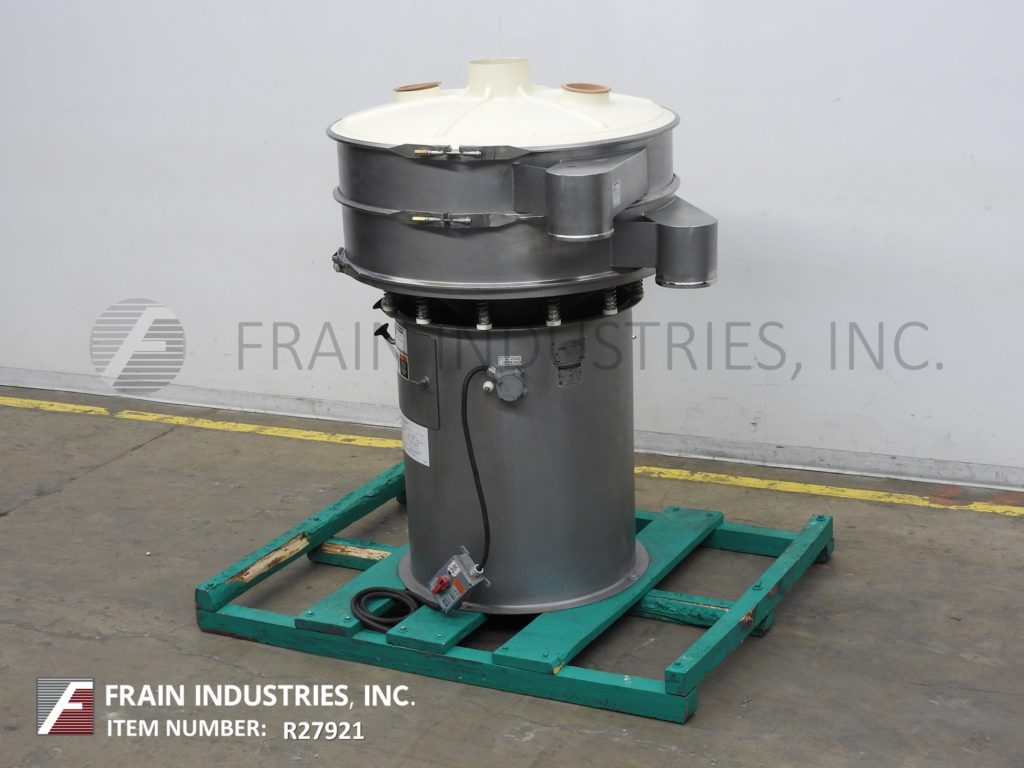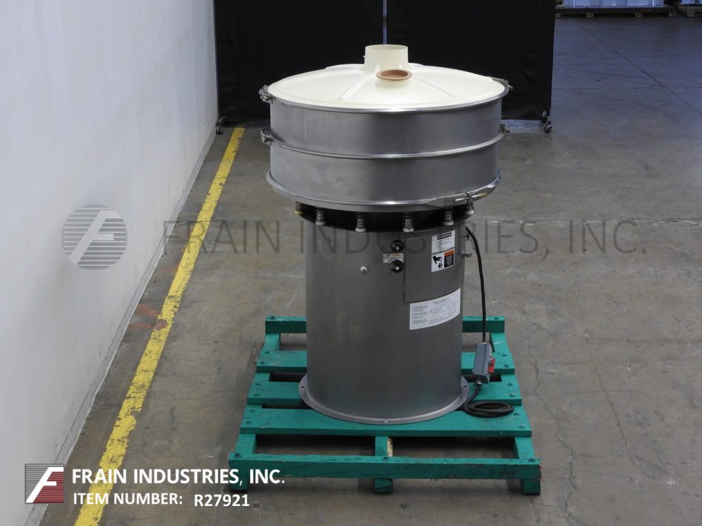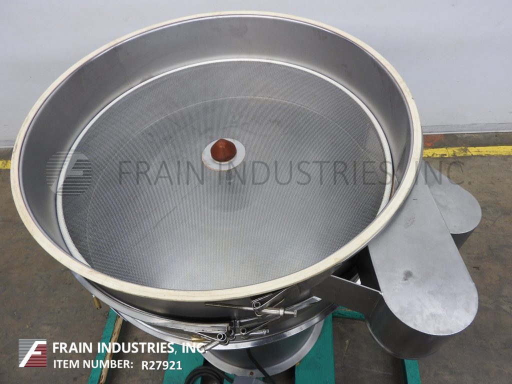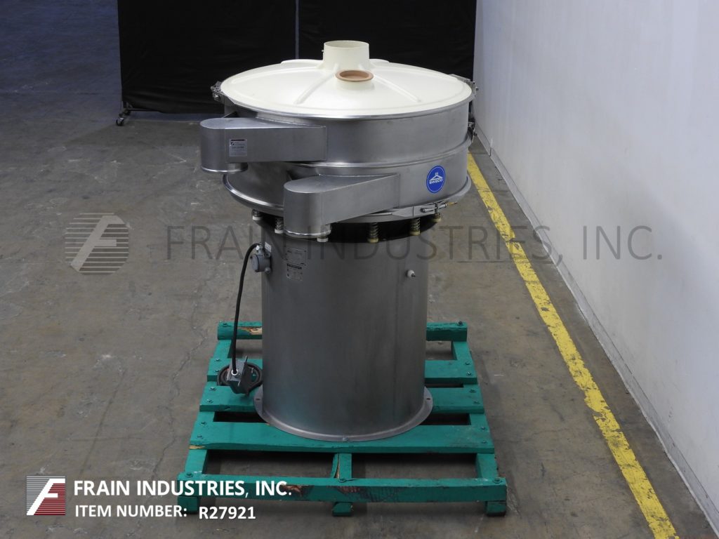 返回所有设备SWECO,型号XS48S888,48“直径,单分离振动系数。每小时卷 - 取决于材料,应用和机器配置。配备(2)48”直径X 8“高不锈钢分离部分和1屏(改变零件应用)。每个甲板具有11英寸的长放电喷口,带8“直径排放口。排出地间隙;前55英寸,底部46”。顶盖有8“直径中心产品端口和(2)6”直径检查端口插头。安装在振动式基座风格基地上。