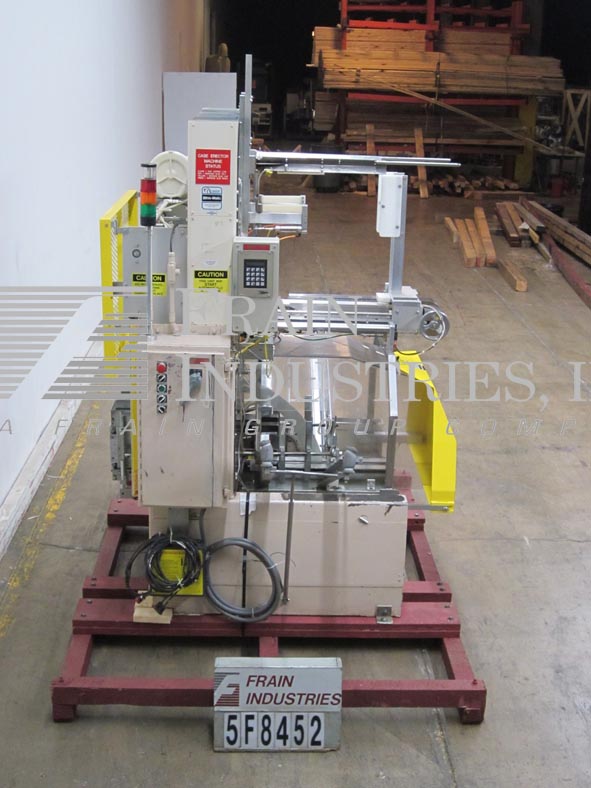 返回所有设备SWF型号1D5A,自动,3件式布莱斯案例前和热熔胶密封剂评分为每分钟12至35例 - 取决于材料和应用。Bliss案例尺寸范围:9-1 / 4“至31-7 / 8”的长度;8“到20”的宽度;4“至16”高度。配备24“长顶空白壳和(2)44”长边空白杂志。(6)吸盘真空PIC N放置,单摩擦进料轮,内部法兰更近,热熔胶和真空系统。控制面板用读数和运行,慢跑,手动,自动和真空,开关,启动和e-stop按钮,带有Statis Light Bars,安装在带有笼式的安全性守卫的重型框架上的开关。