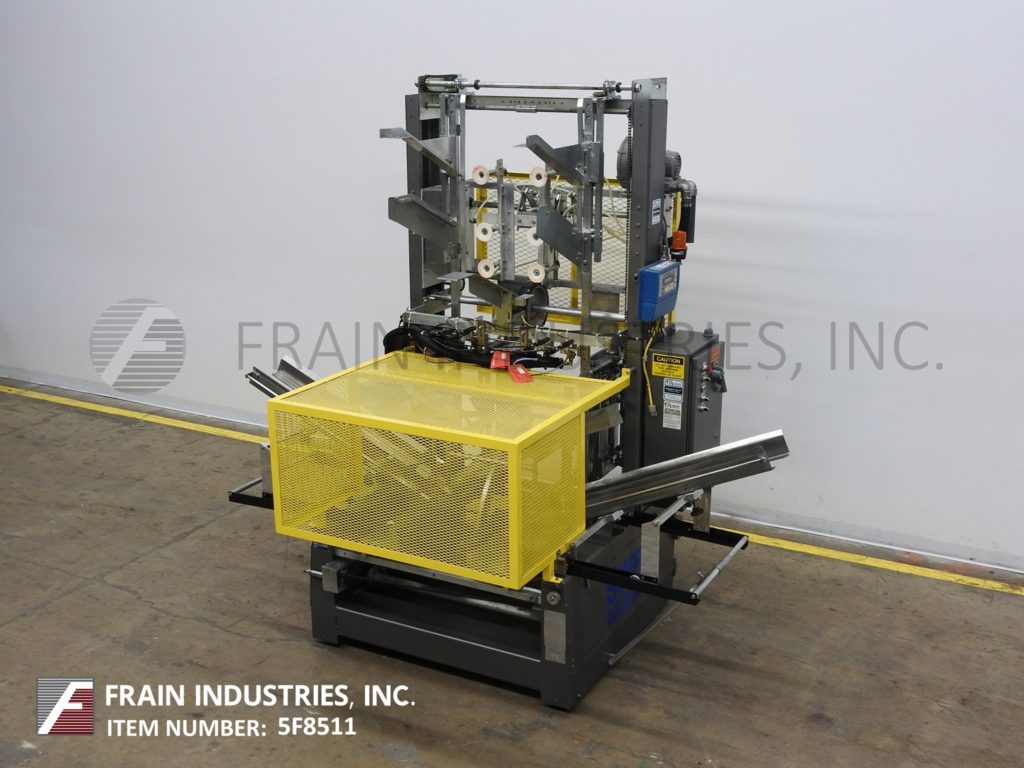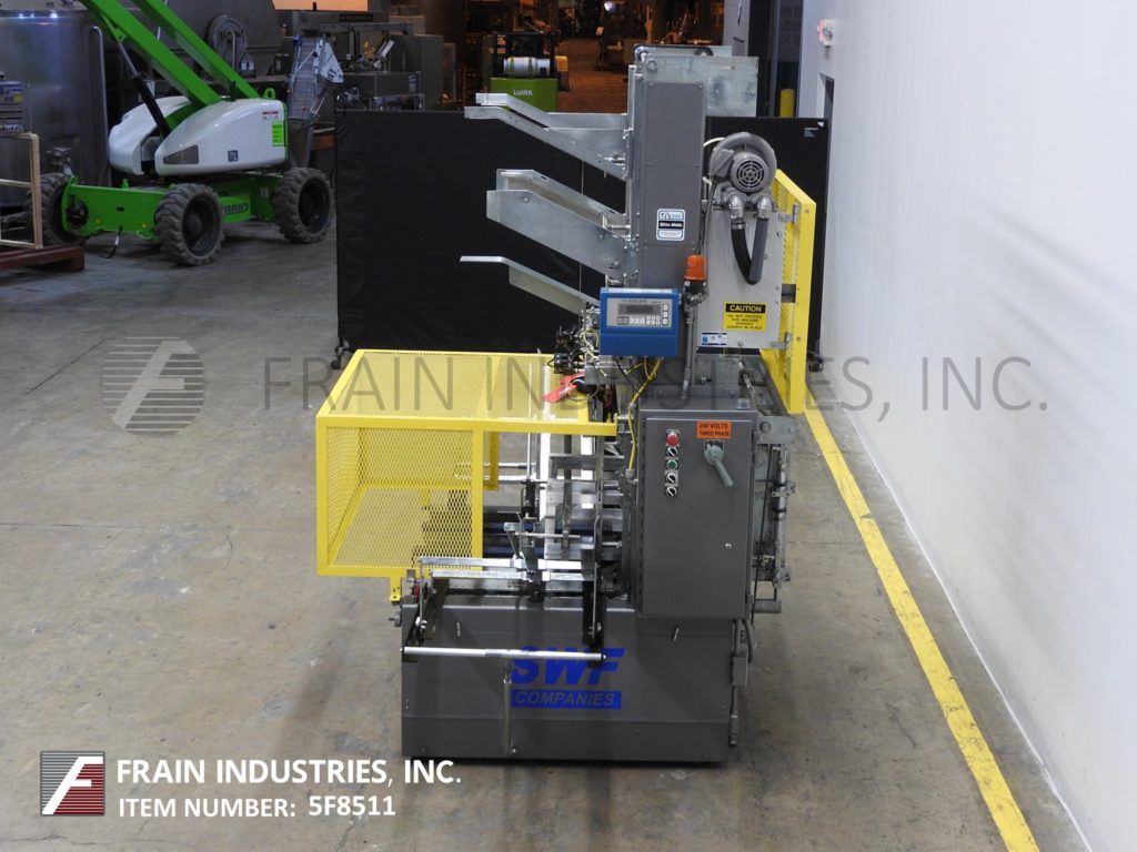 返回所有设备SWF型号1D5AK,自动热熔胶,3片bliss case former额定从12到35箱每分钟-取决于材料和应用。接线盒尺寸范围:9-1/4"至31-7/8"长度;宽度为8"至20";4英寸到16英寸的高度。配备24"长空白盒和(2)可调24"长极乐端杂志。6吸盘真空位置,单摩擦进给轮,内法兰闭合器,机械热胶锅,温度控制刻度从200到550华氏度和集成的真空系统。带有运行/慢跑、手动/自动和真空开关的控制面板,带有启动/ e-stop按钮,安装在标准底座上,带有笼式安全防护装置。