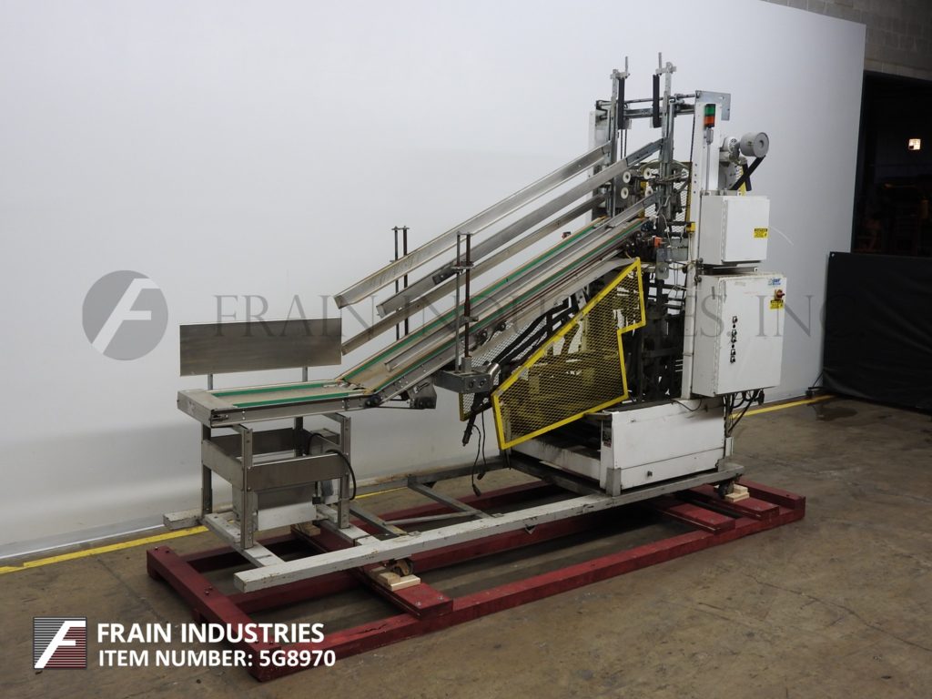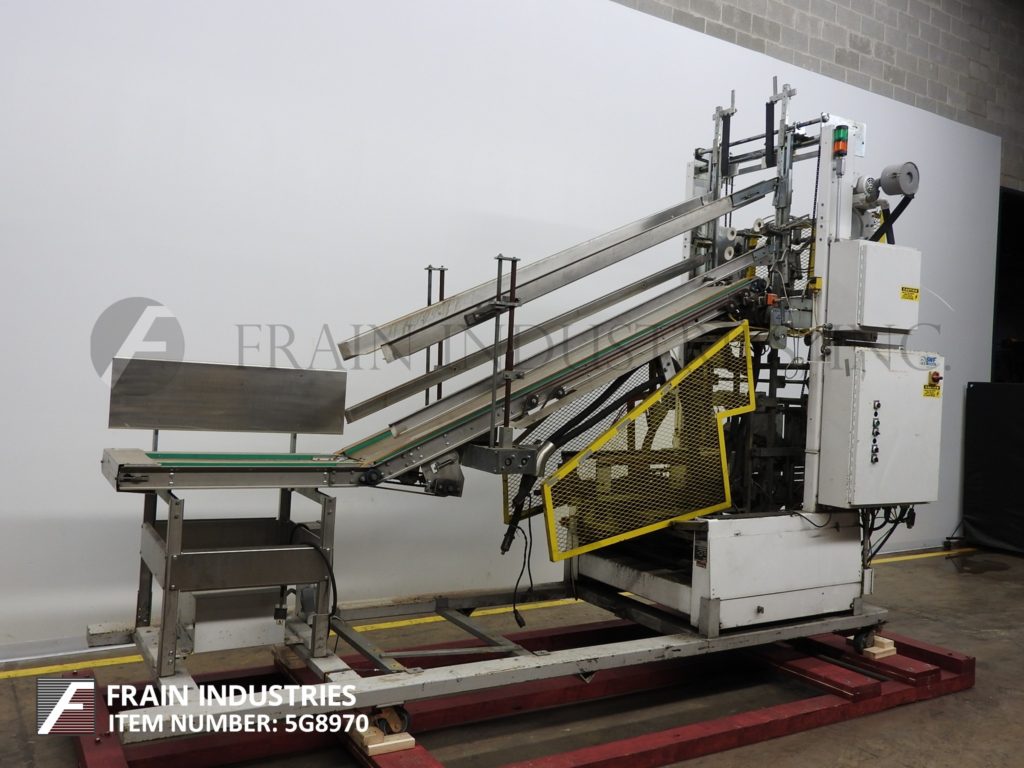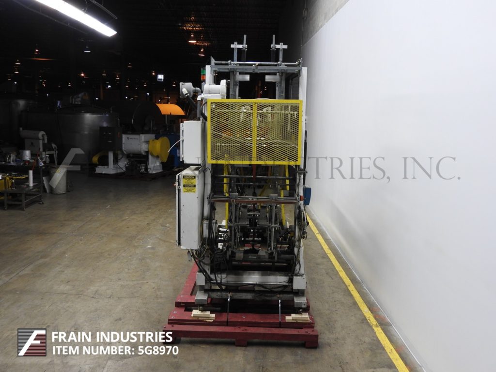 返回所有设备SWF型BF 400VK,自动,三片bliss case former和热熔胶封口机。根据材料、应用和机器配置的不同,每分钟额定12 - 35箱。极乐外壳尺寸范围:9¼"至32½"长度;宽度9"至18";4英寸到16英寸的高度。配备146"长动力顶级空白杂志和(2)46"长边空白杂志,(4)吸盘真空pic n位置,单摩擦进给轮,诺信热熔胶装置带图案控制和真空系统。控制面板有A/B控制器,运行/慢跑,手动/自动和真空开关,启动/ e-stop按钮和笼式安全防护与统计灯条。安装在重型框架上。