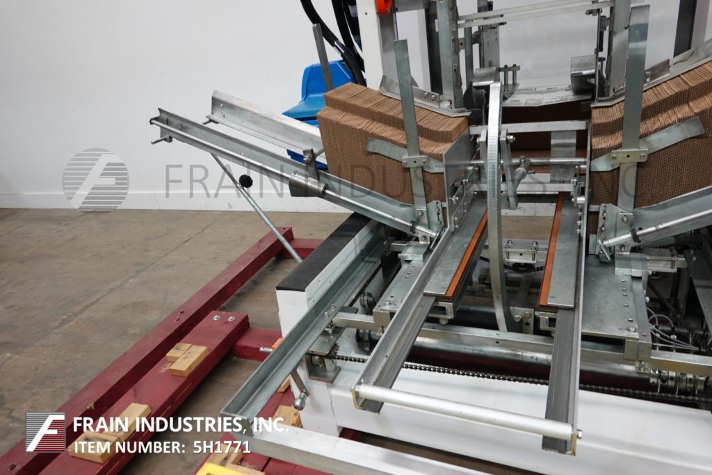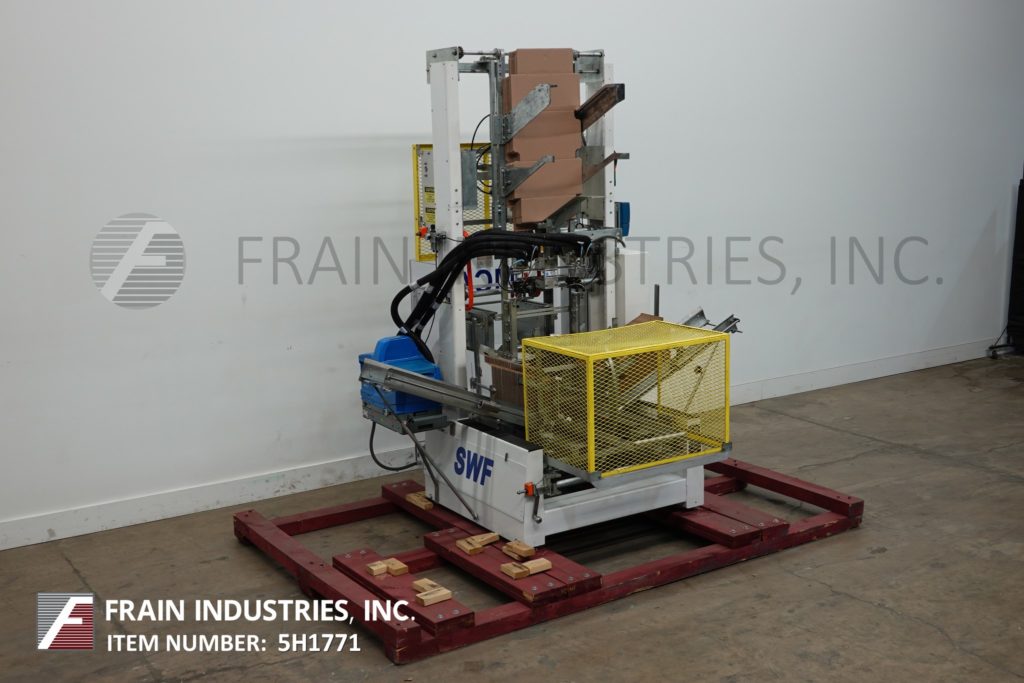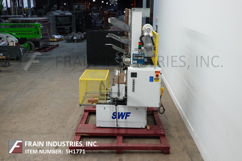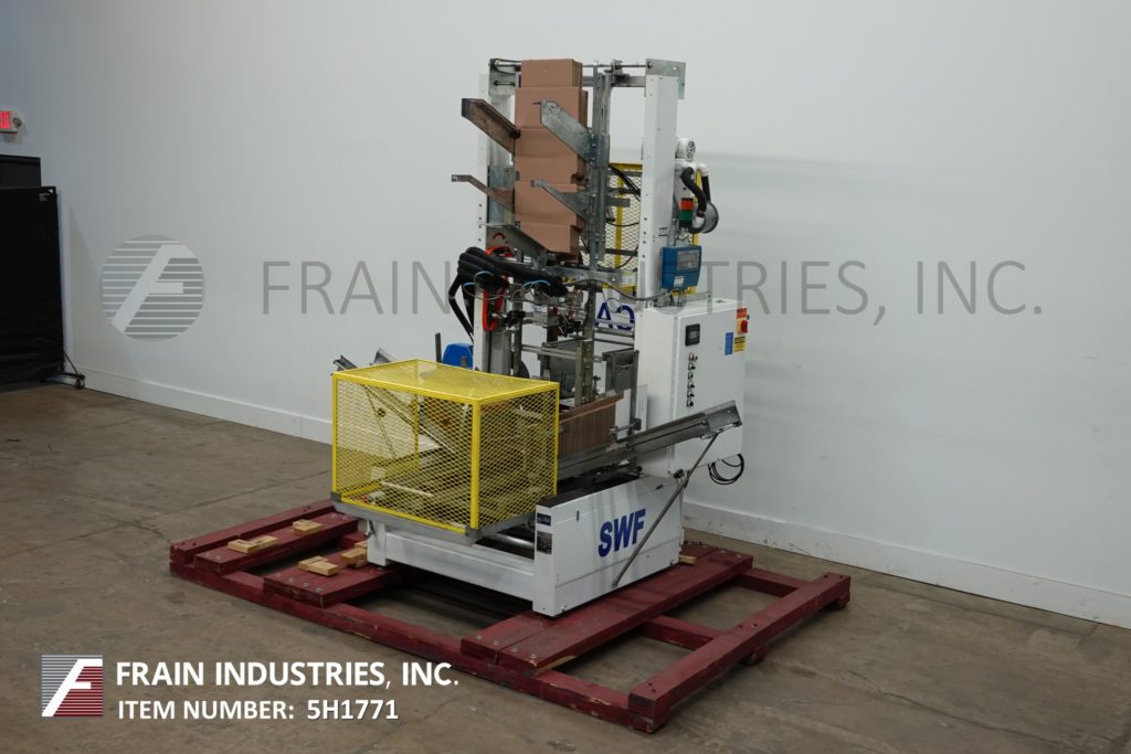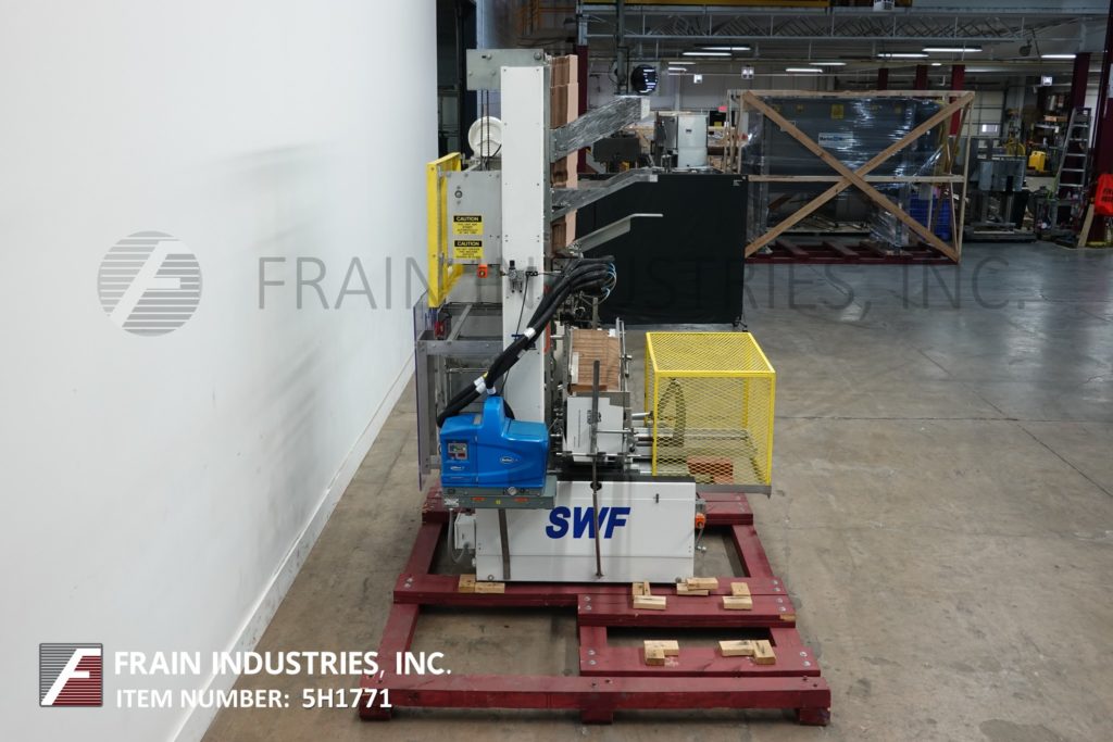 返回所有设备SWF BF400V型全自动三片式封壳机和热熔胶封胶机。根据材料、应用和机器配置的不同,每分钟12至35箱。Bliss盒尺寸范围:9¼“至32½”长度;9“至18”的宽度;身高4到16英寸。(6)吸盘真空位置,单摩擦进给轮,带模式控制和真空系统的诺森热熔胶装置。控制面板有A/B控制器,panel View 300触摸屏显示,运行/慢跑,手动/自动和真空开关,启动/ e-stop按钮和笼式安全保护。安装在重型框架。