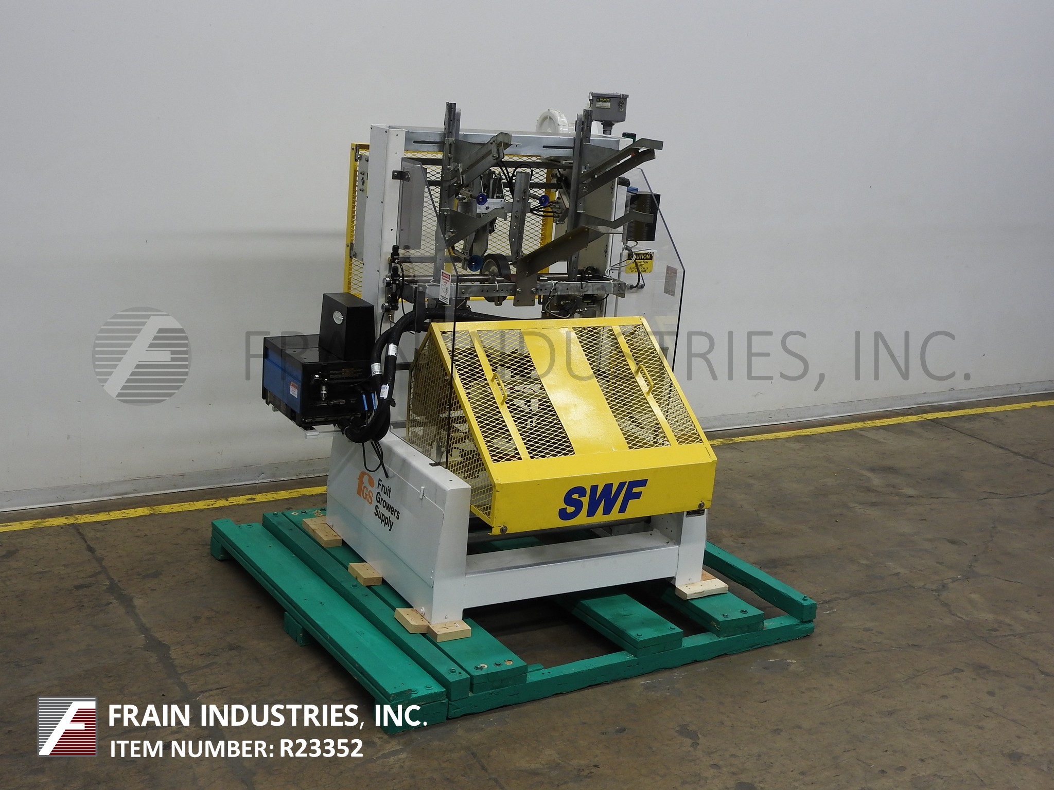 返回所有设备SWF型号TF400V,自动,热熔胶,托盘以前可速度高达40托盘/分钟 - 取决于材料和应用。托盘:7“至34英寸”;8 -1/8“到22”宽度;高度1“至10”。扁平空白尺寸:10 -1/2至37-7 / 8“长度; 12”至36“宽度。配备了28英寸的长杂志,6杯真空空白拣选,双摩擦轮饲料,热熔化胶水罐,集成真空泵,状态指示灯,e-stop和互锁障碍防护。排放高度:22“